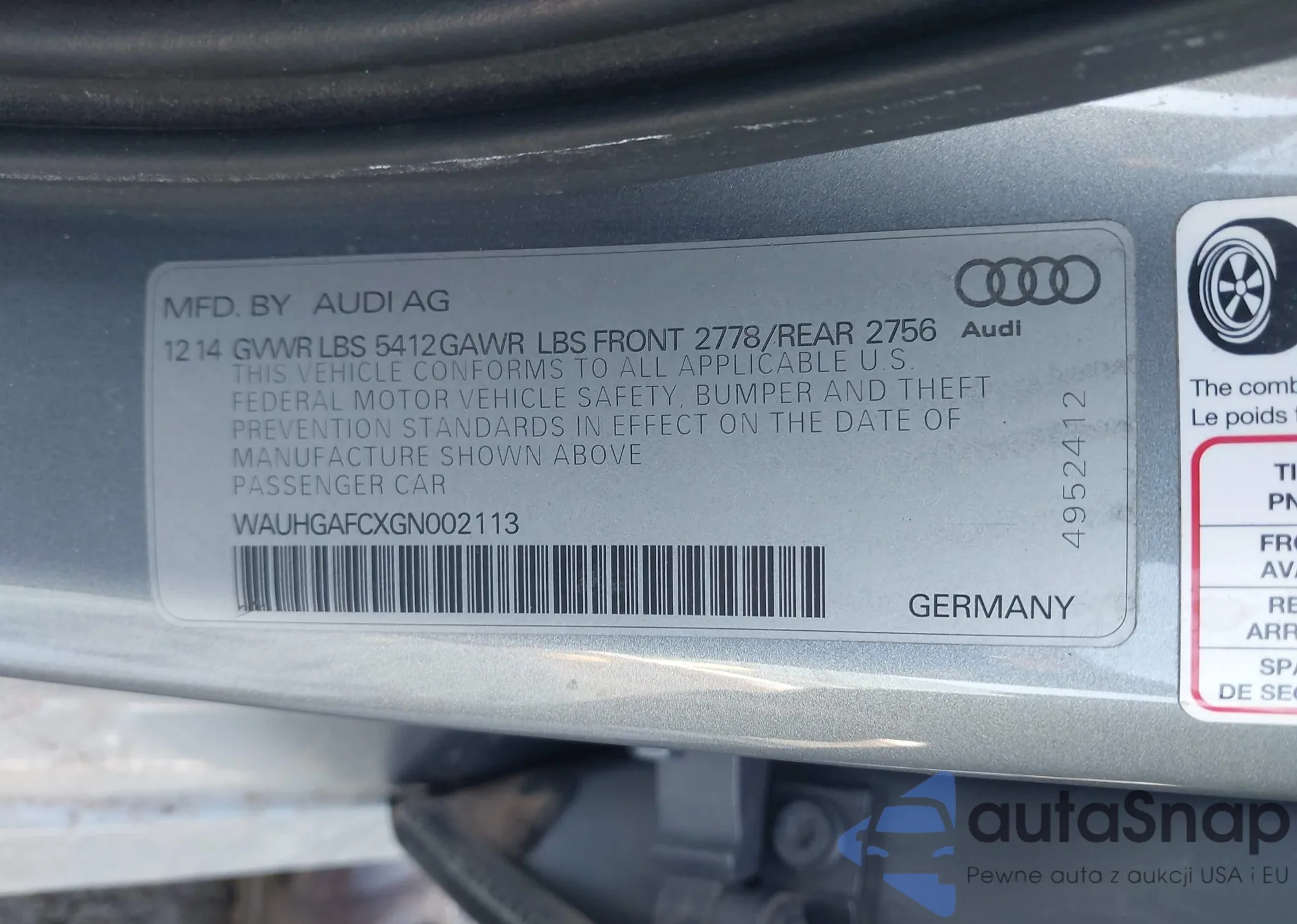 • VIN: WAUHGAFCXGN002113