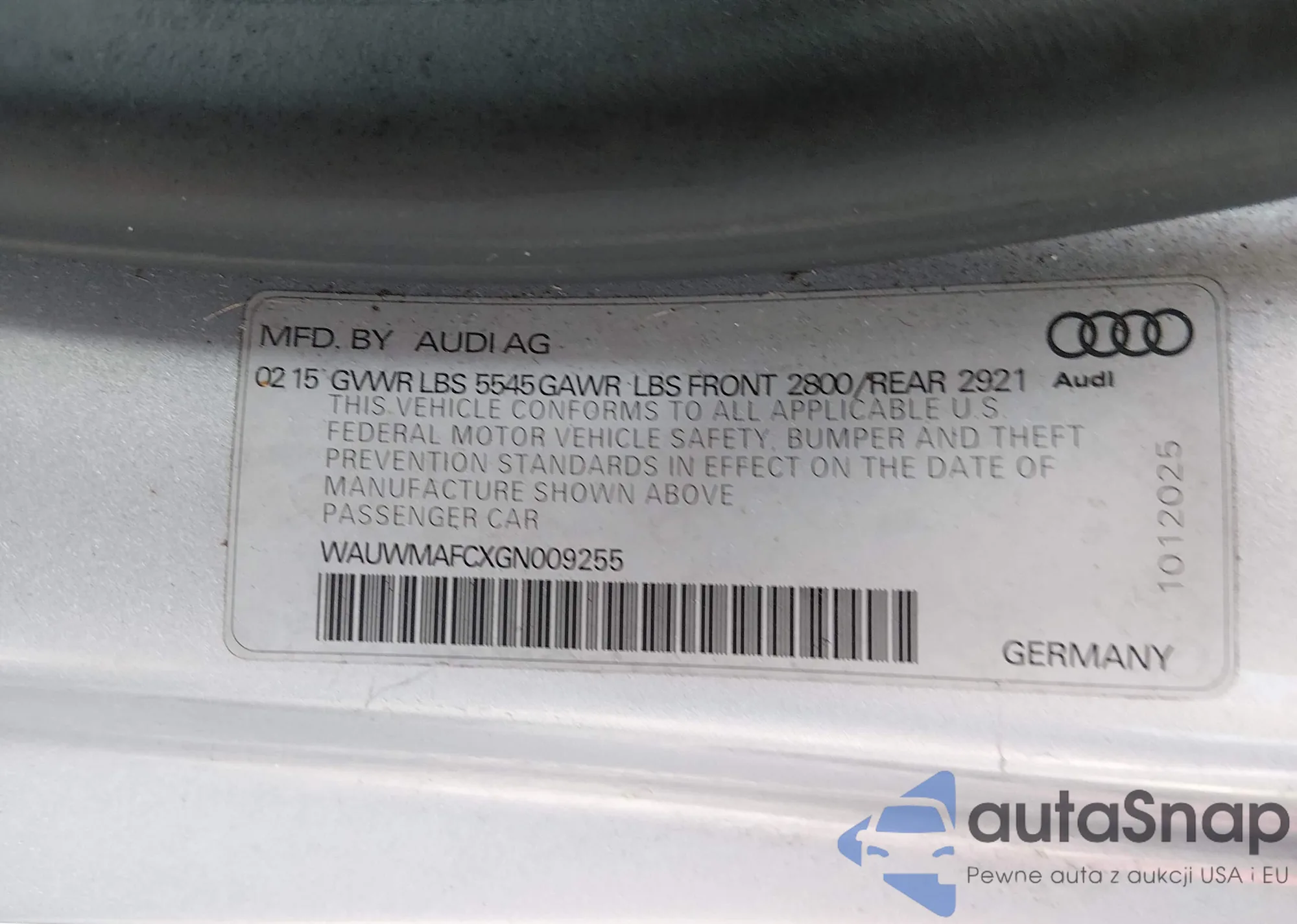 The car Audi A7 2016 (VIN WAUWMAFCXGN009255) has not been auctioned before. The documents are clean, and the mileage matches or is below the market average. Sold by an insurance company – we recommend purchase. Delivery to the port will take approx. 6–8 weeks.