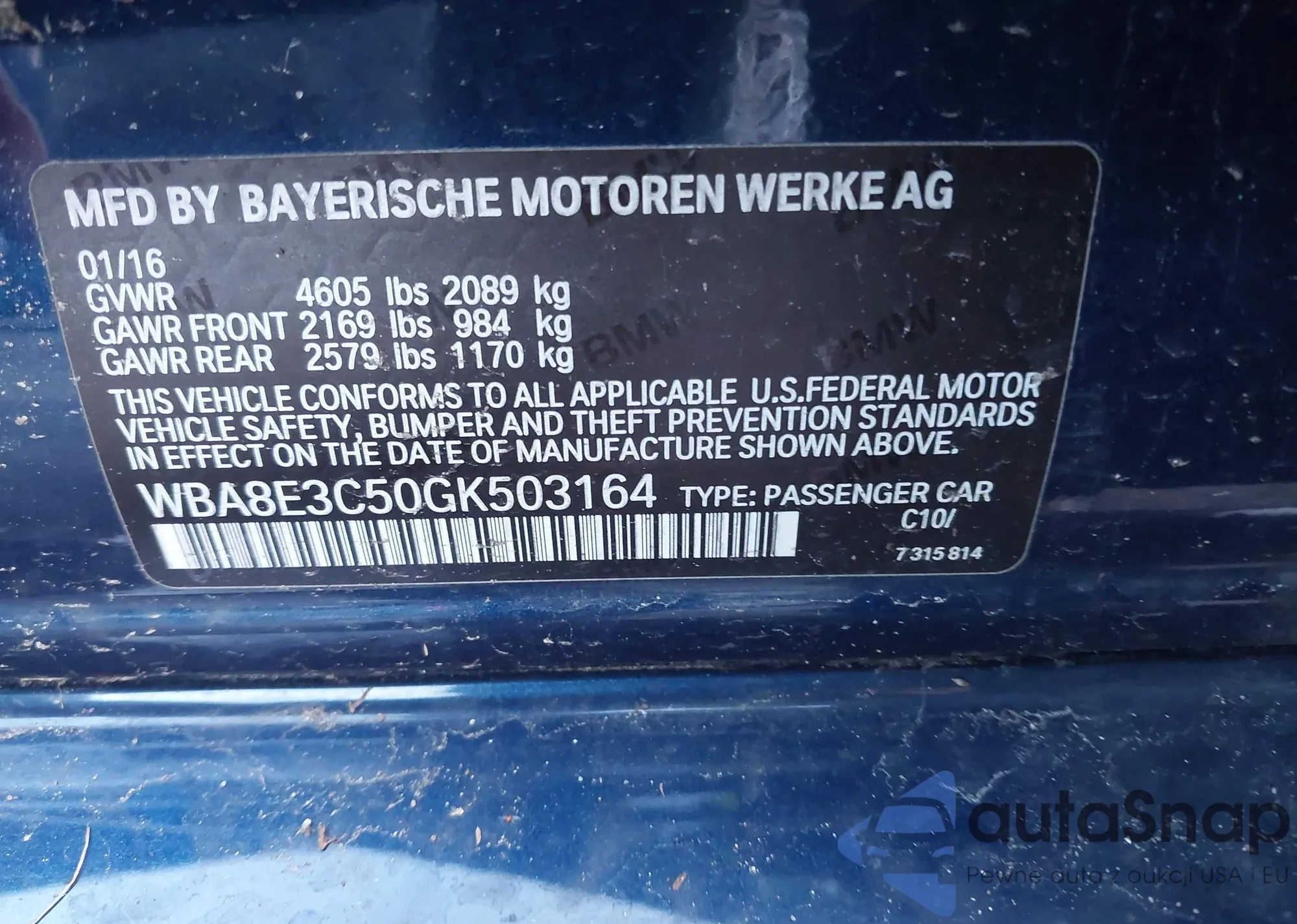 VIN: WBA8E3C50GK503164