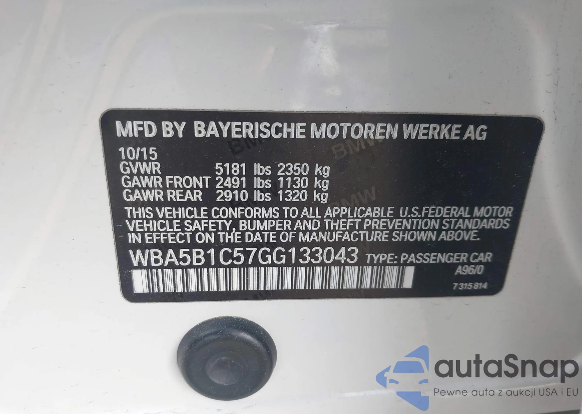 VIN: WBA5B1C57GG133043