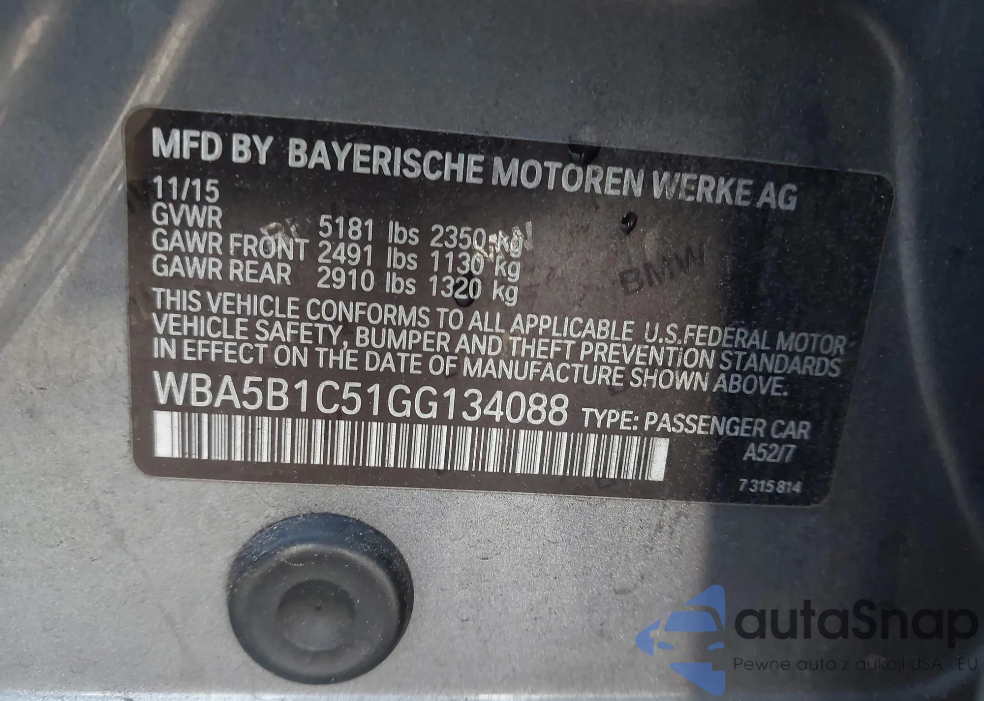 The car BMW 5er 2016 (VIN WBA5B1C51GG134088) has not been auctioned before. The documents are clean, and the mileage matches or is below the market average. Sold by an insurance company – we recommend purchase. Delivery to the port will take approx. 6–8 weeks.