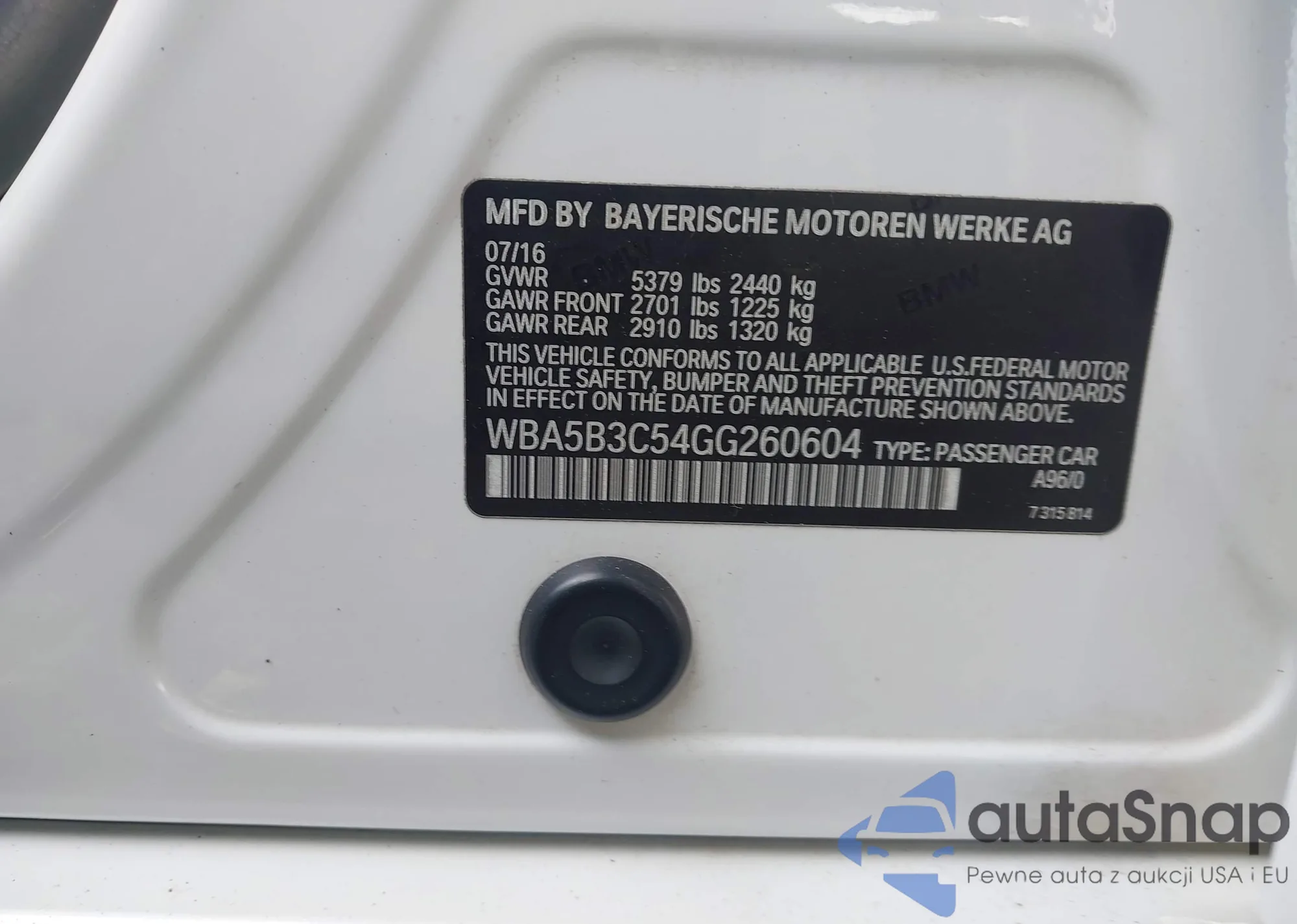 VIN: WBA5B3C54GG260604