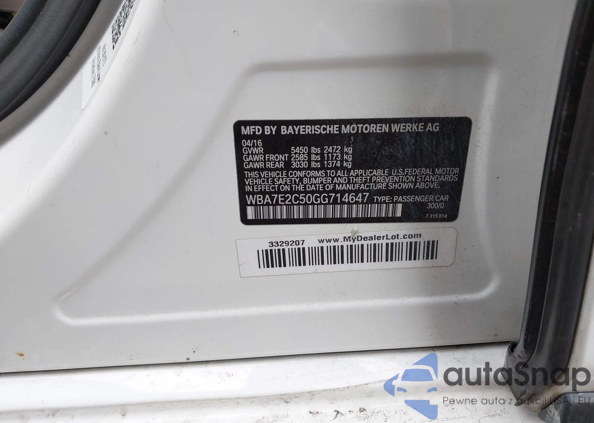 VIN: WBA7E2C50GG714647