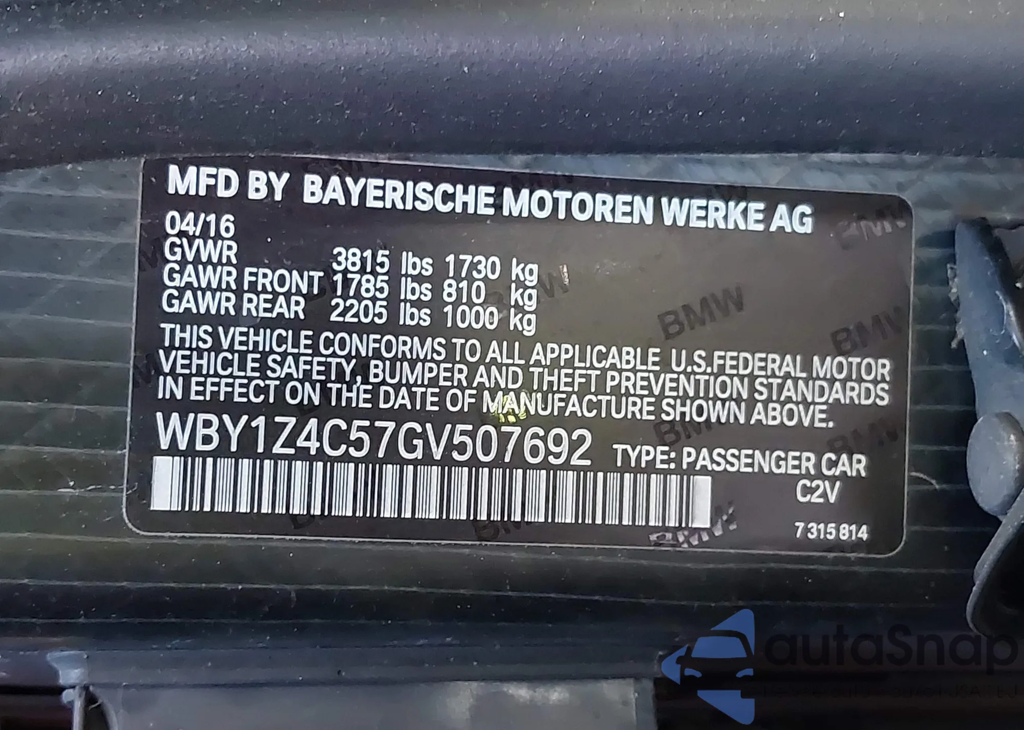 VIN: WBY1Z4C57GV507692