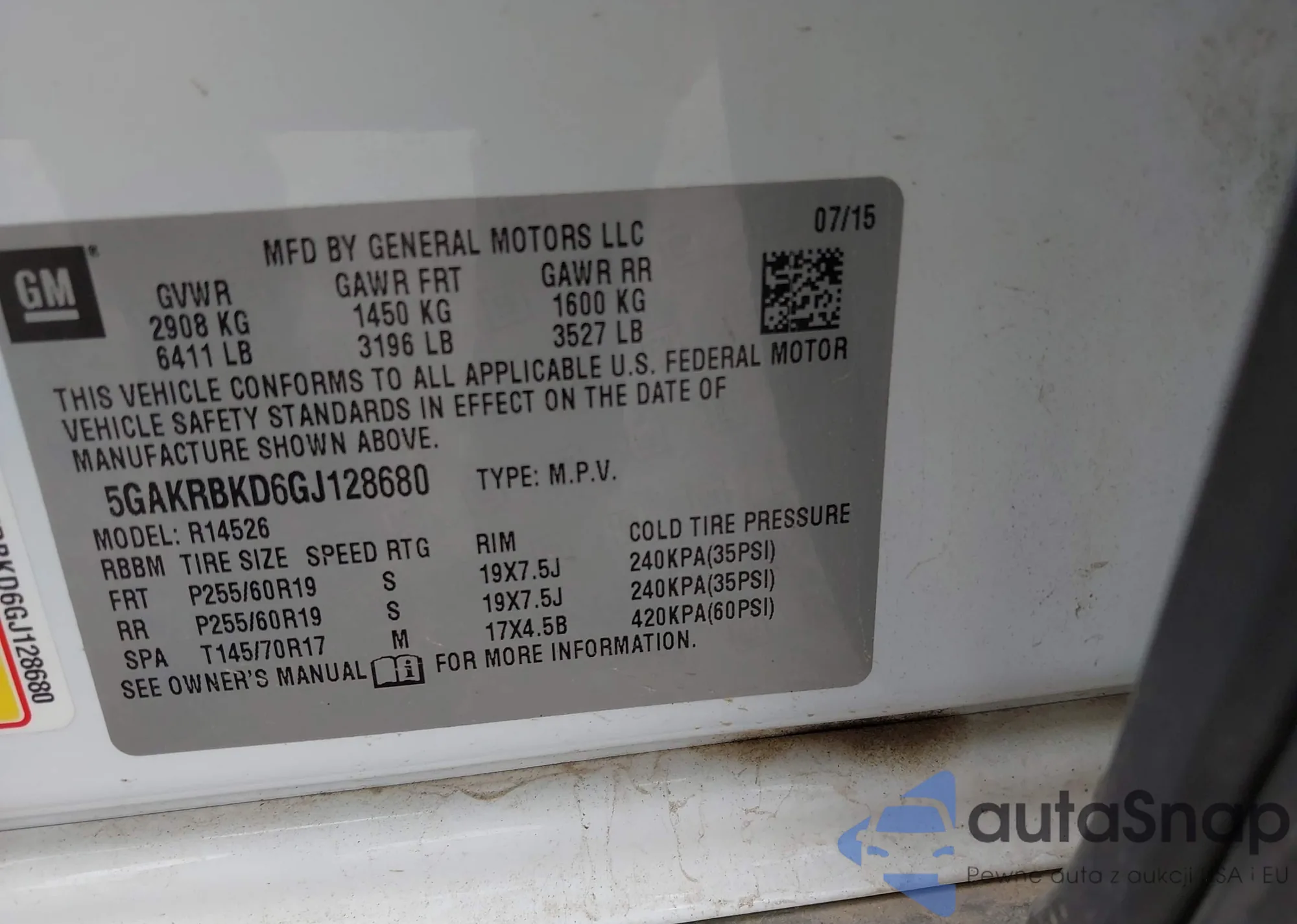 The car Buick Enclave 2016 (VIN 5GAKRBKD6GJ128680) has not been auctioned before. The documents are clean, and the mileage matches or is below the market average. Sold by an insurance company – we recommend purchase. Delivery to the port will take approx. 6–8 weeks.