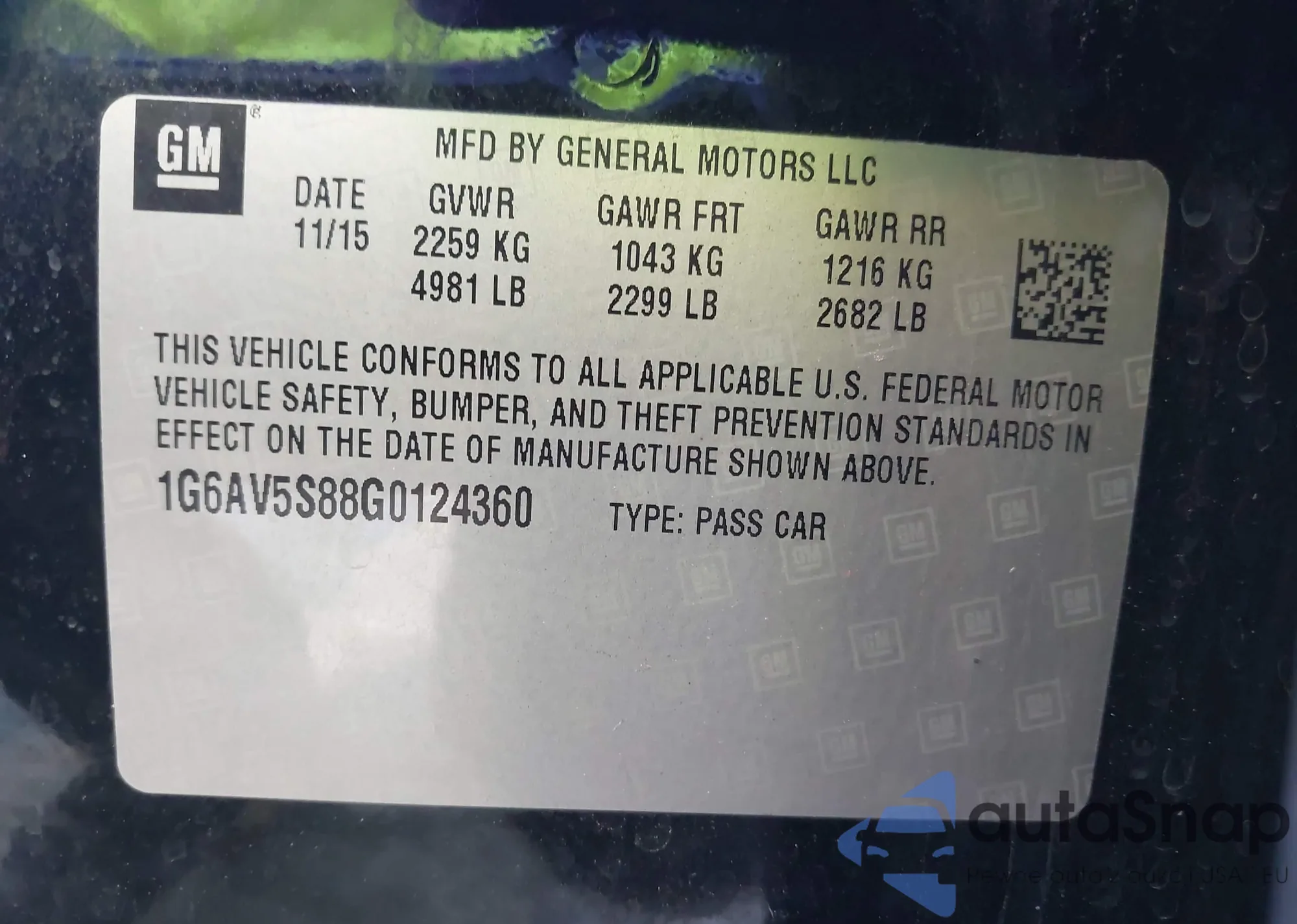 • VIN: 1G6AV5S88G0124360