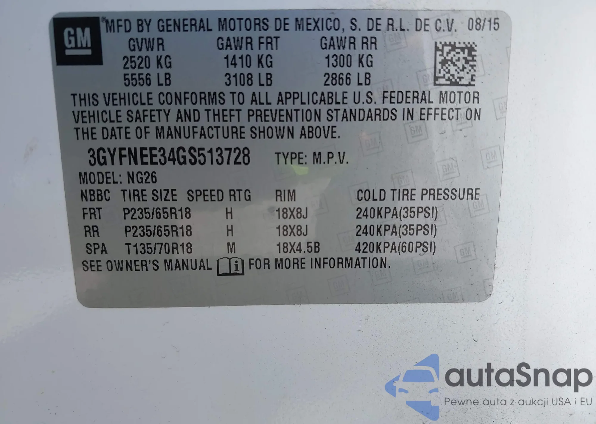 VIN: 3GYFNEE34GS513728