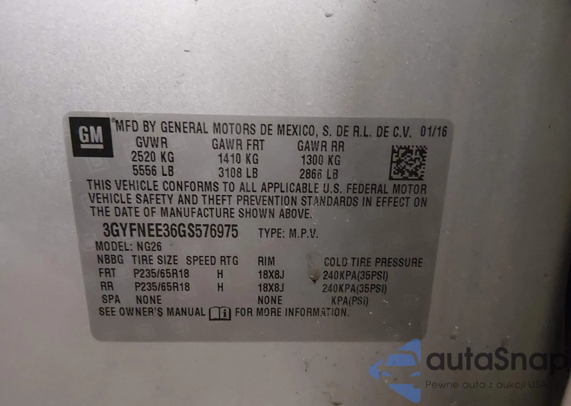 • VIN: 3GYFNEE36GS576975