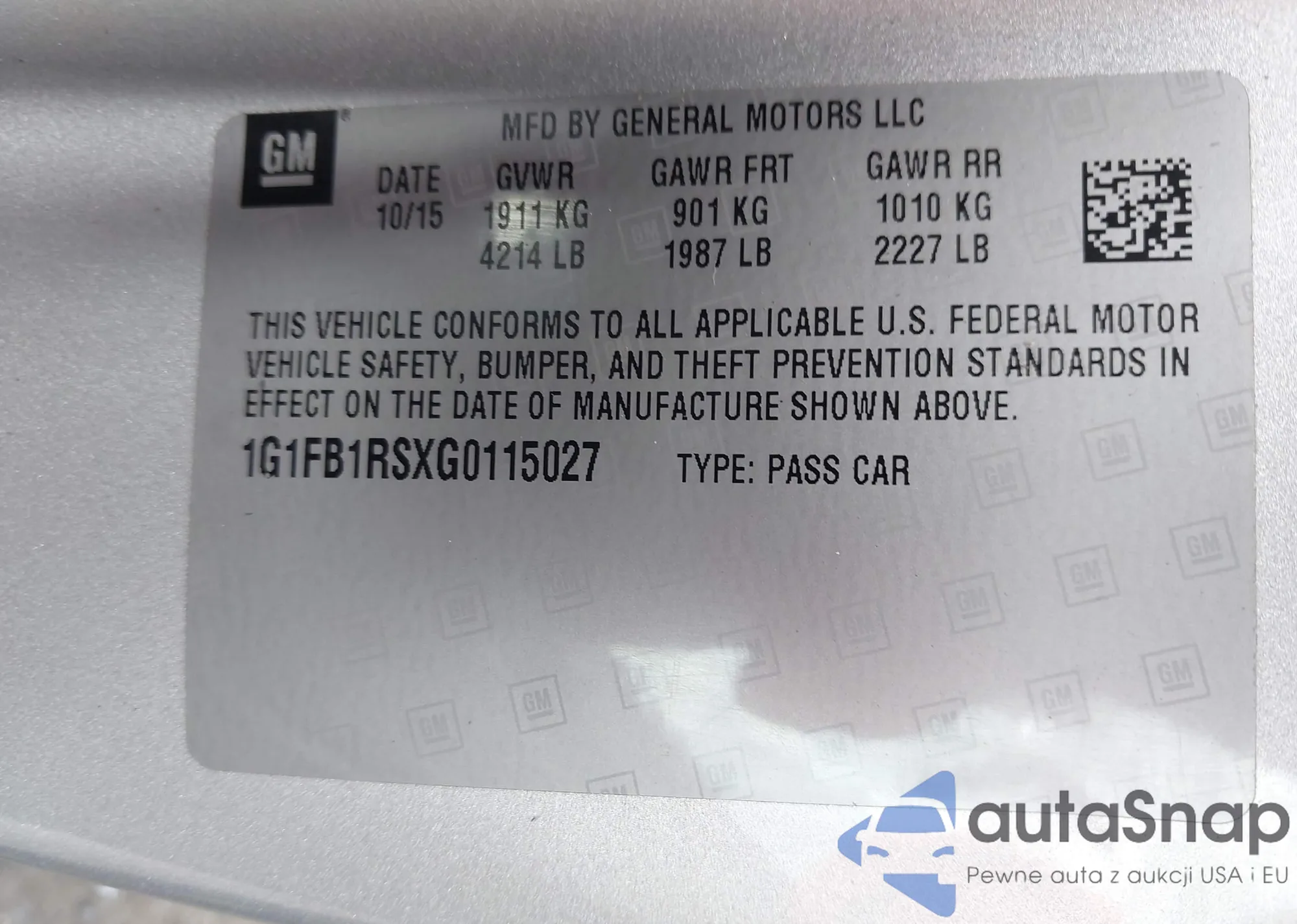 The car Chevrolet Camaro 2016 (VIN 1G1FB1RSXG0115027) has not been auctioned before. The documents are clean, and the mileage matches or is below the market average. Sold by an insurance company – we recommend purchase. Delivery to the port will take approx. 6–8 weeks.
