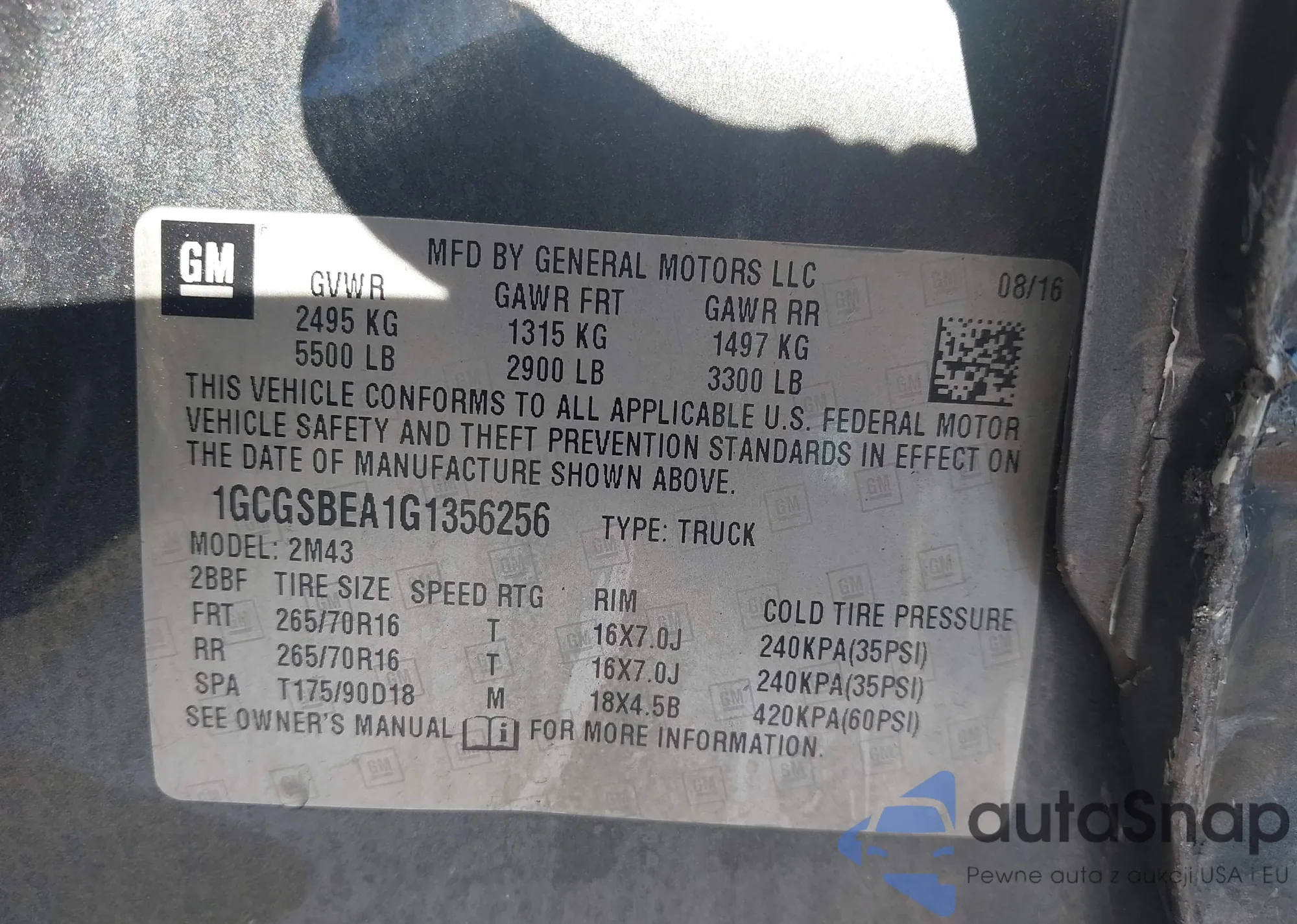 VIN: 1GCGSBEA1G1356256