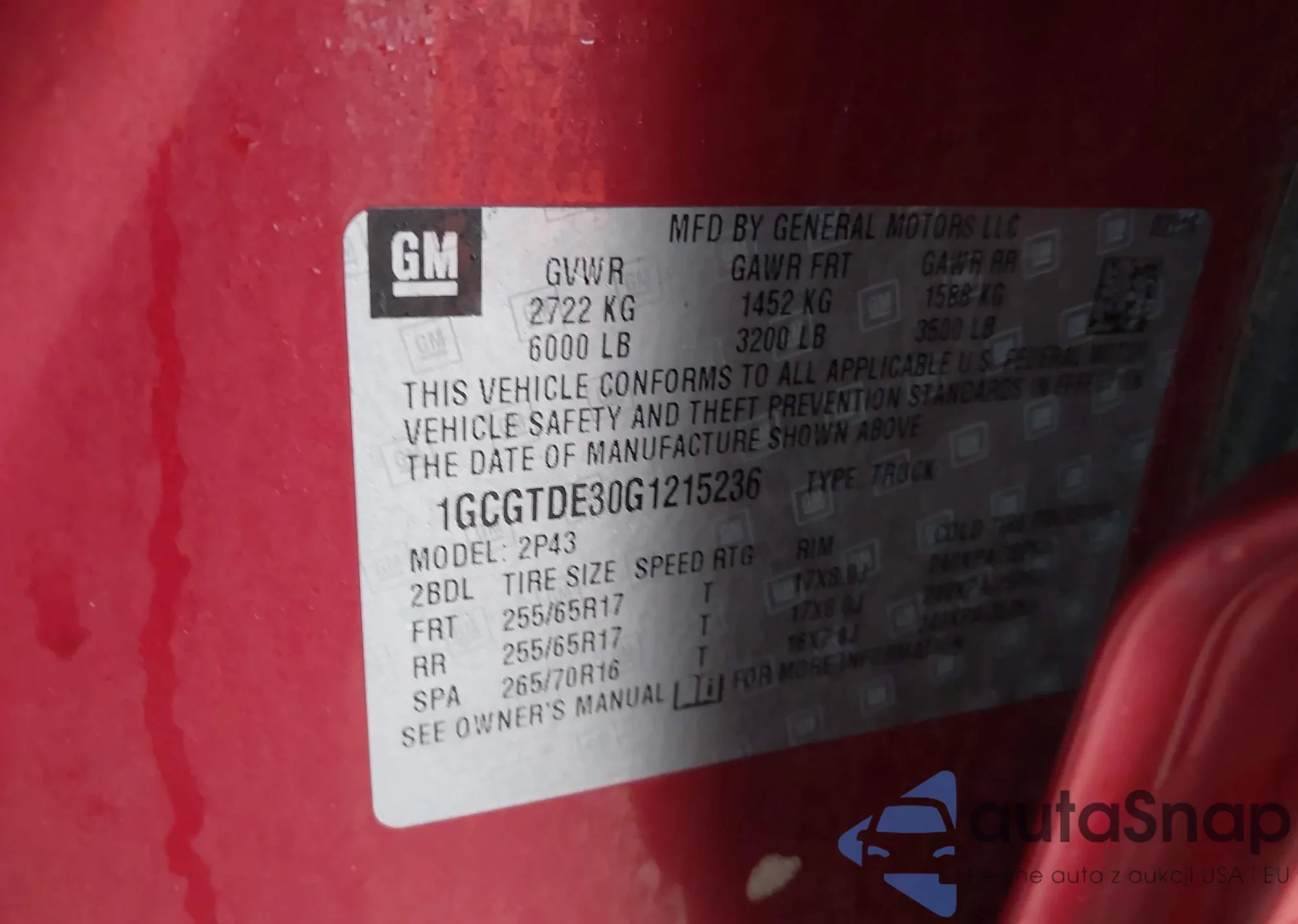 VIN: 1GCGTDE30G1215236