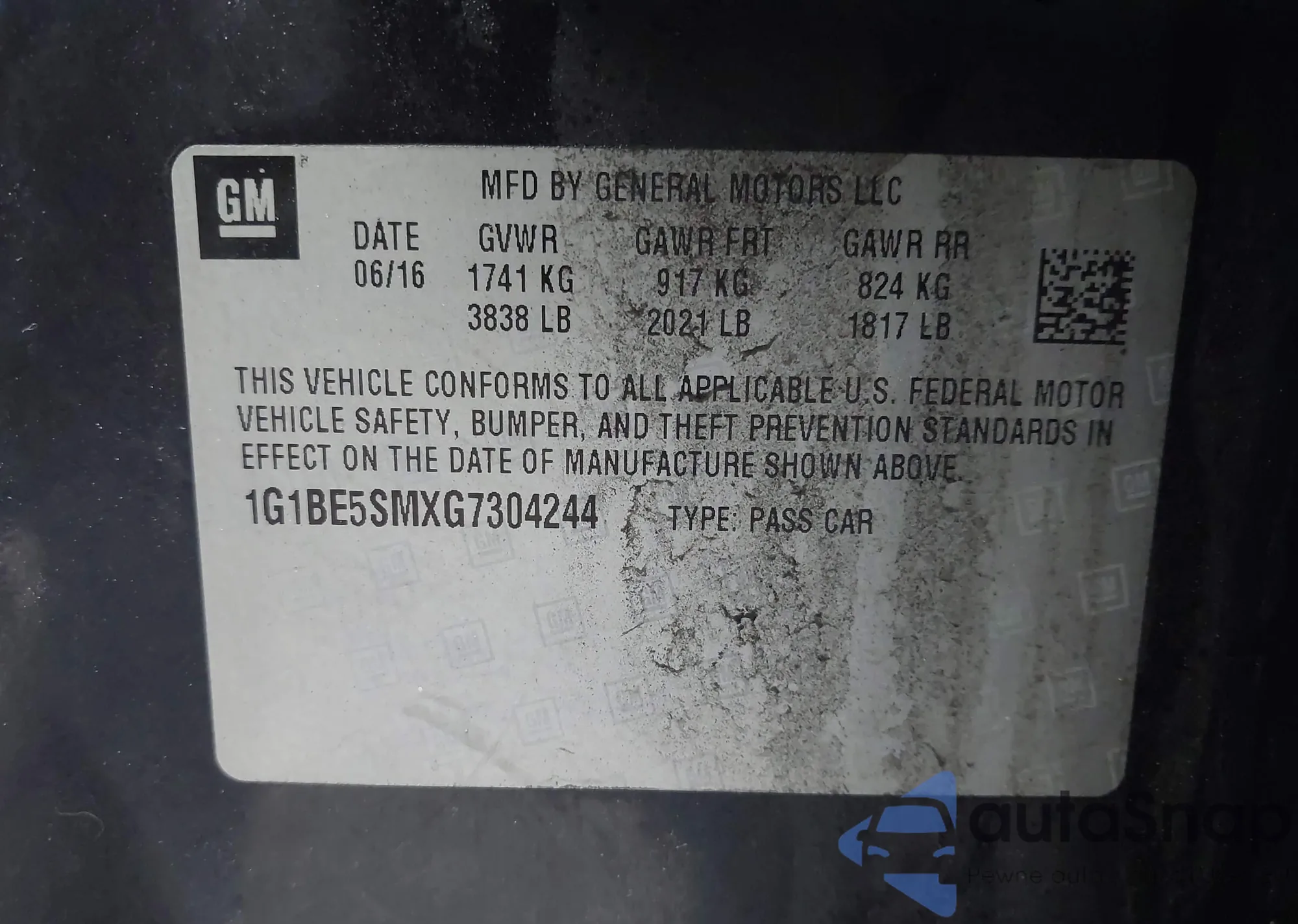 VIN: 1G1BE5SMXG7304244