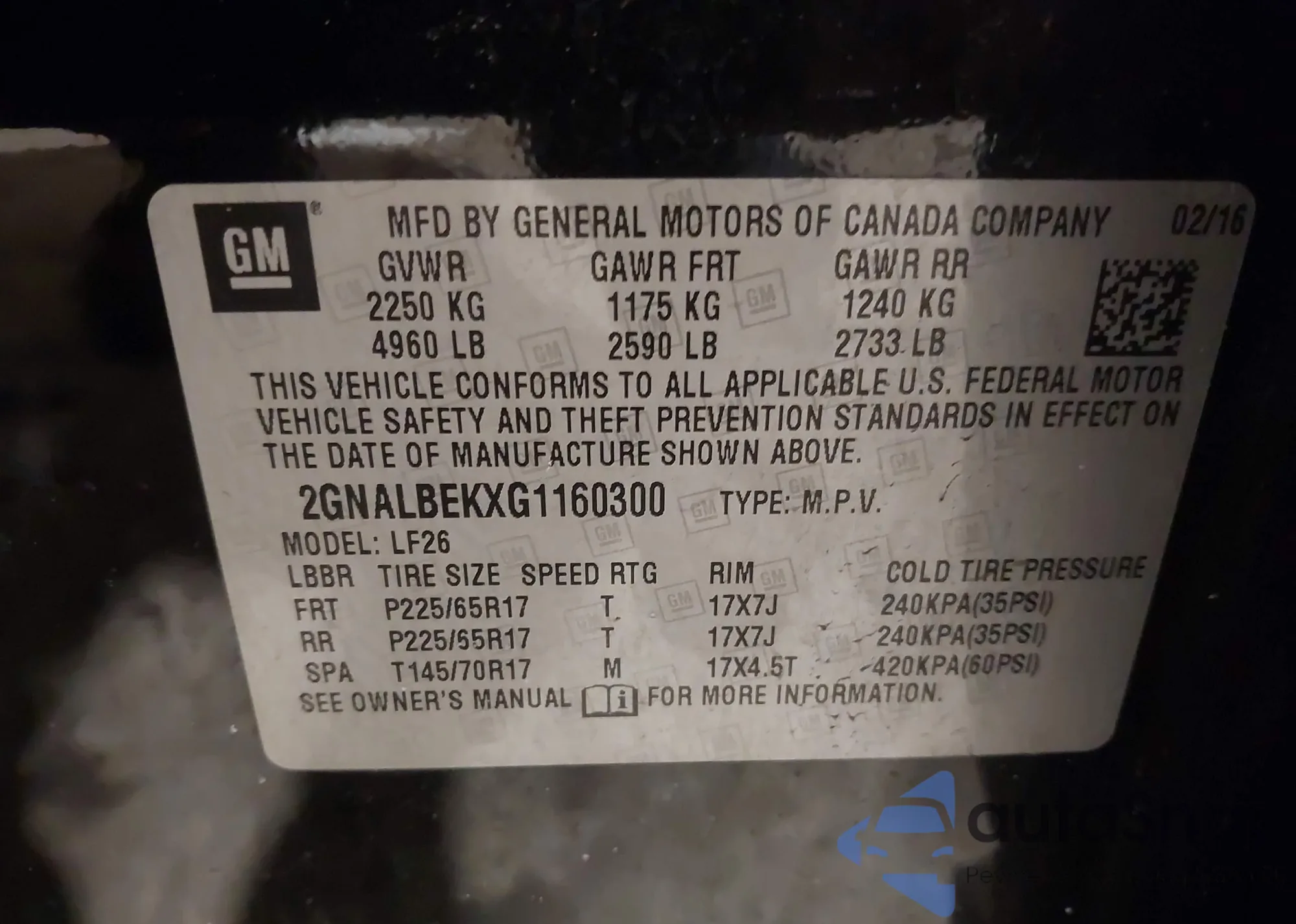 VIN: 2GNALBEKXG1160300