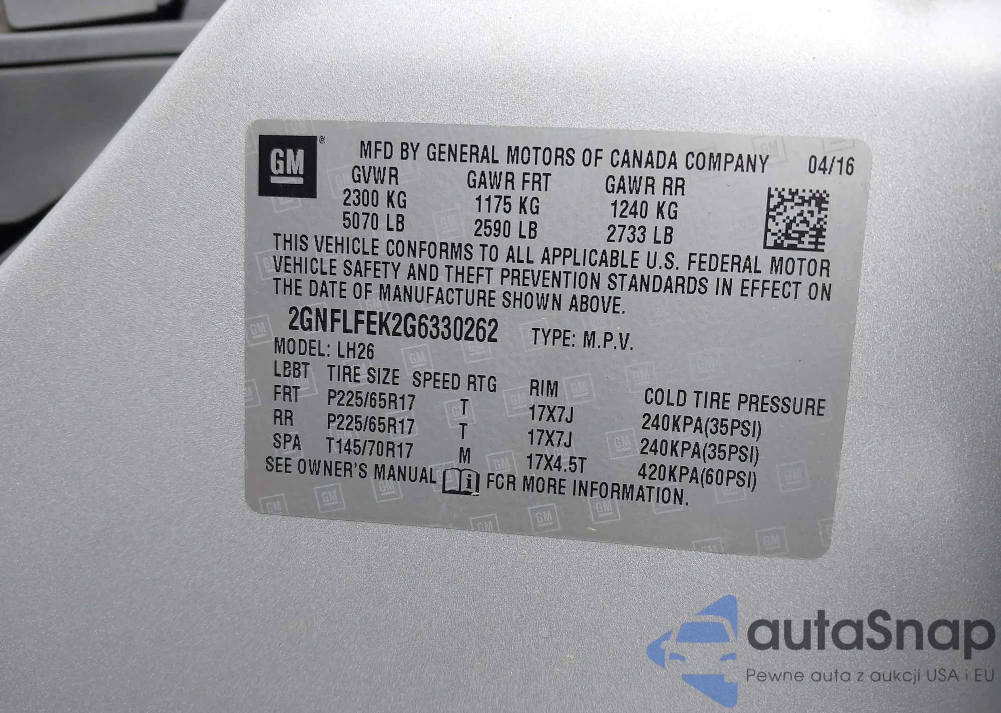 VIN: 2GNFLFEK2G6330262
