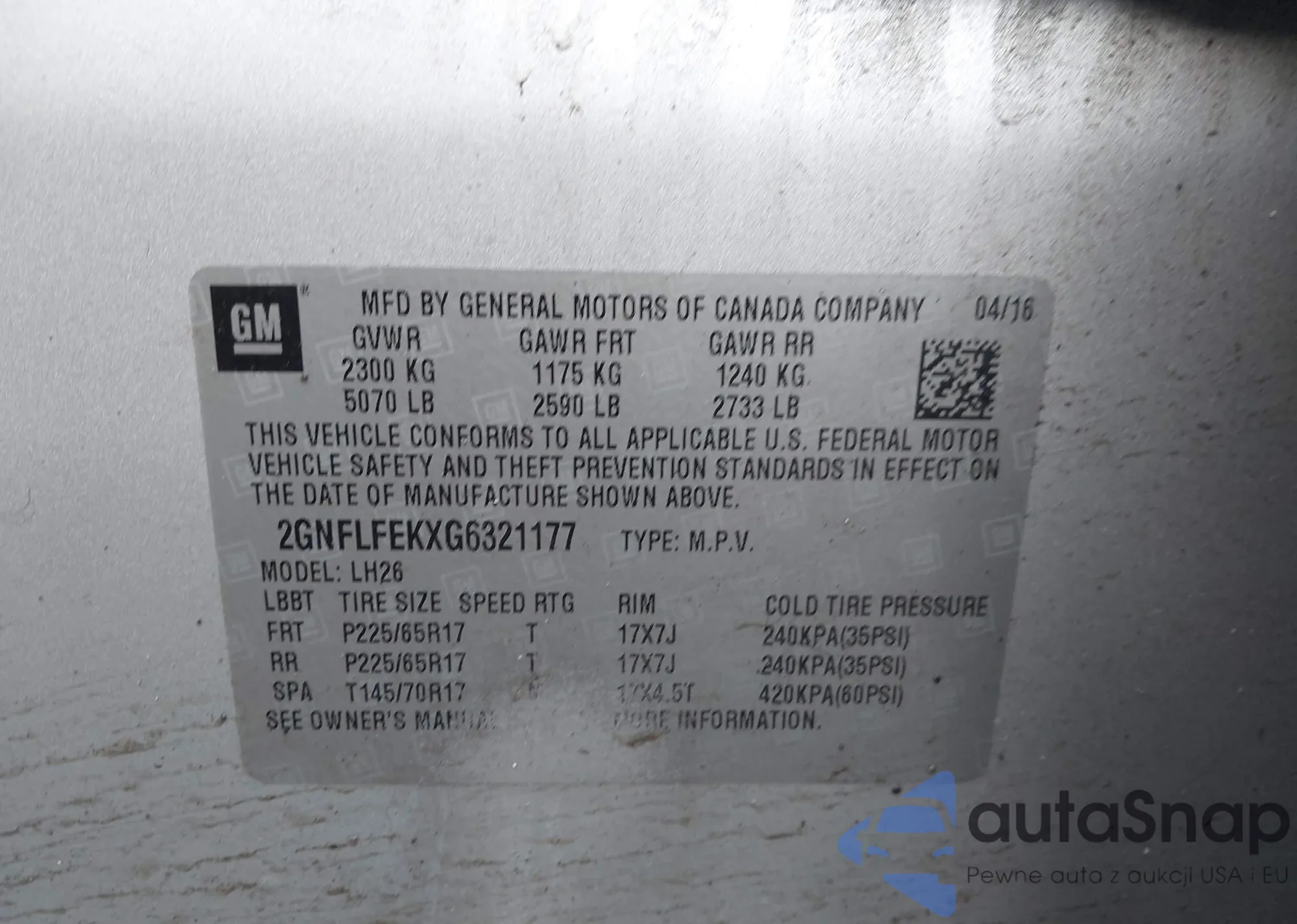 VIN: 2GNFLFEKXG6321177