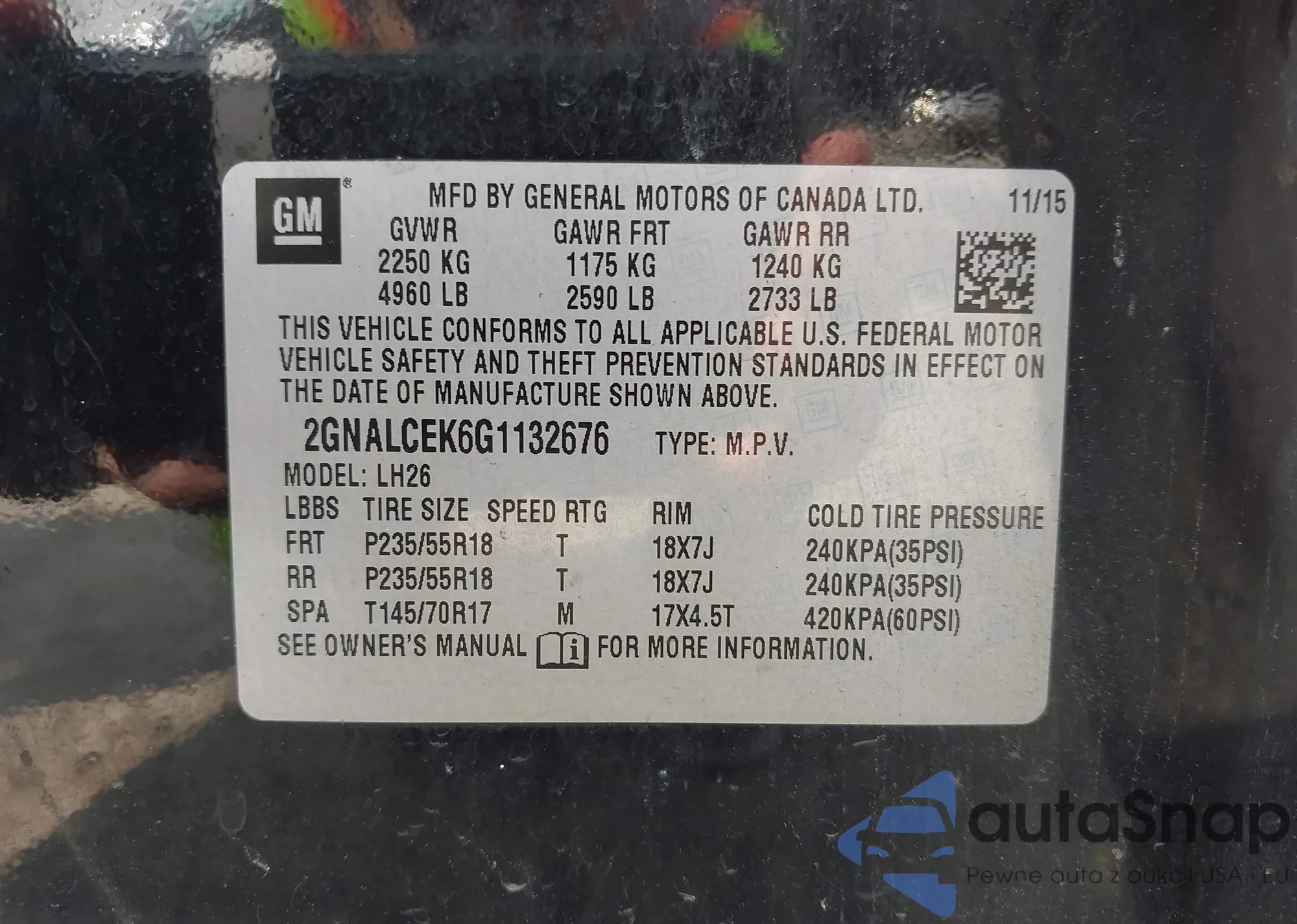 VIN: 2GNALCEK6G1132676