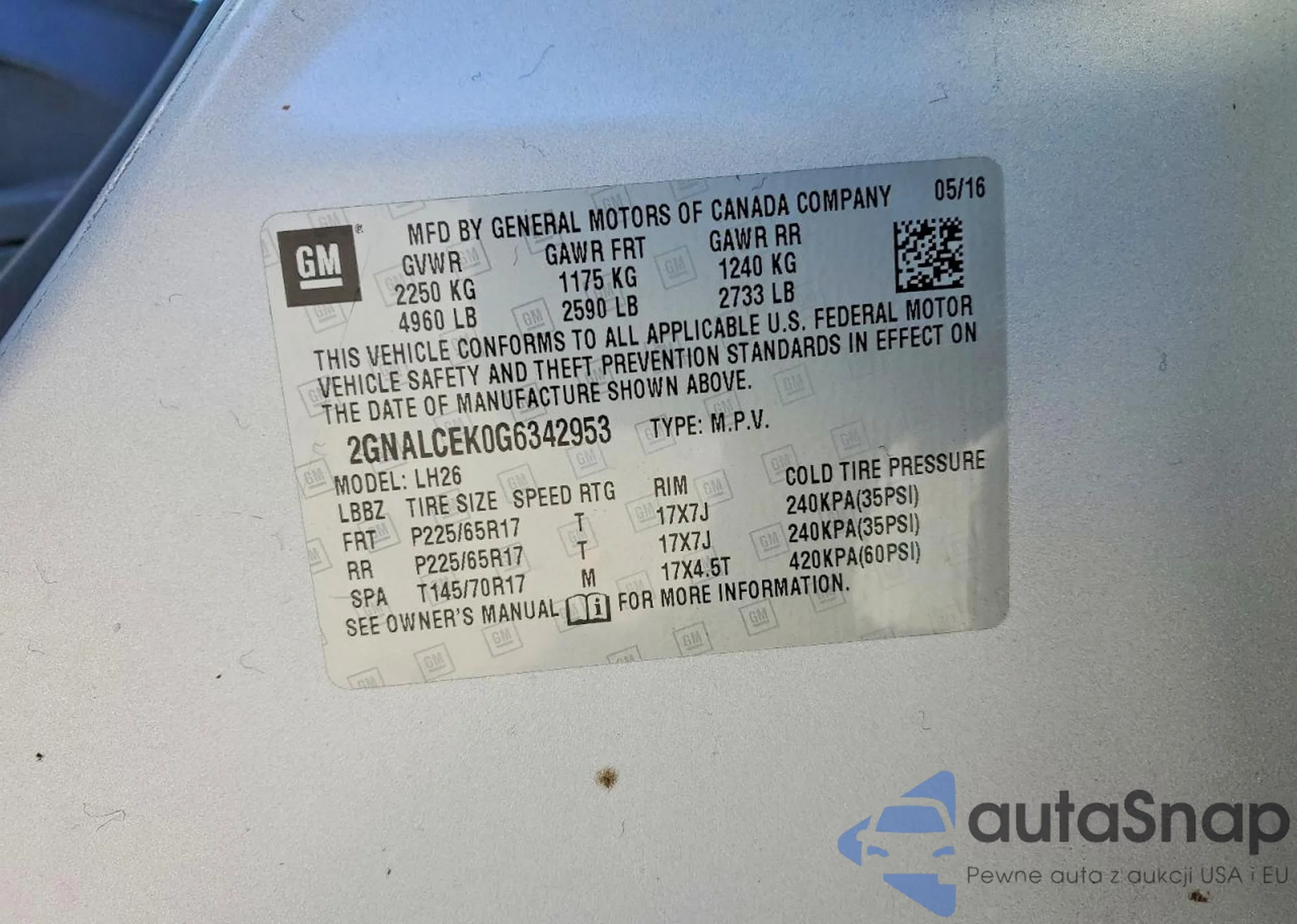 The car Chevrolet Equinox 2016 (VIN 2GNALCEK0G6342953) is sold by an unverified seller. We recommend checking the Carfax report and confirming registration possibilities before purchase.