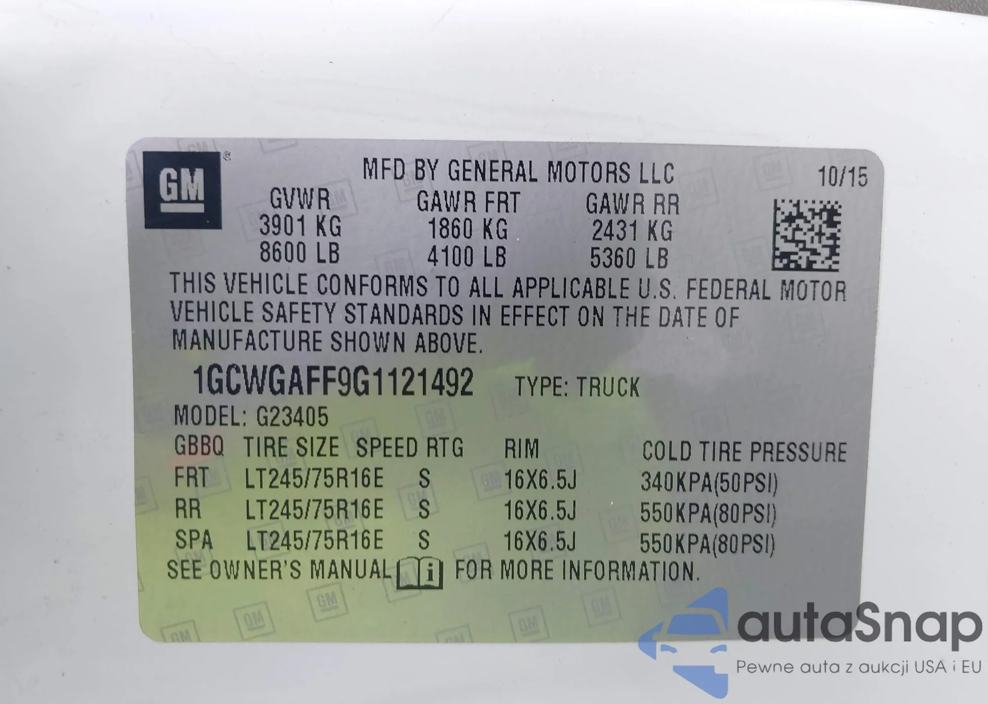 VIN: 1GCWGAFF9G1121492