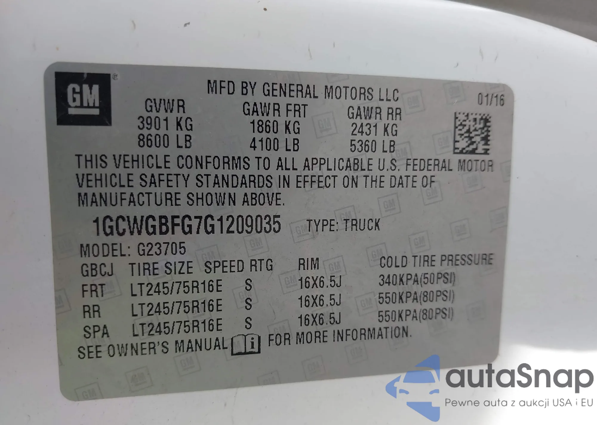 VIN: 1GCWGBFG7G1209035