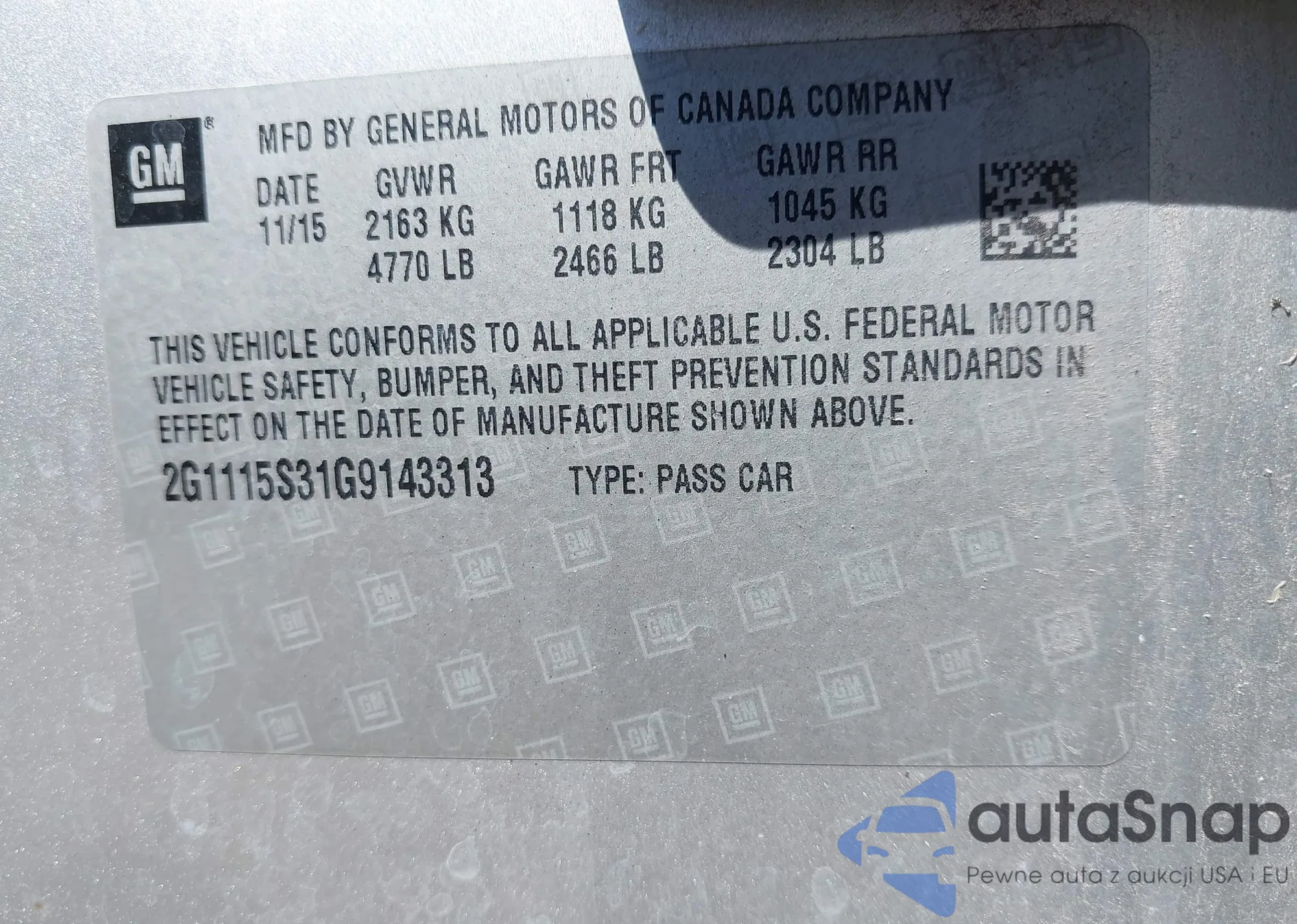 The car Chevrolet Impala 2016 (VIN 2G1115S31G9143313) is sold by an unverified seller. We recommend checking the Carfax report and confirming registration possibilities before purchase.
