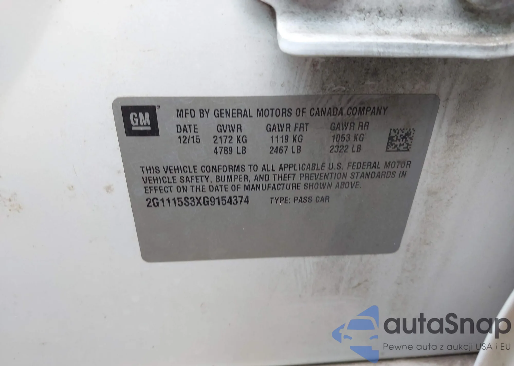 VIN: 2G1115S3XG9154374