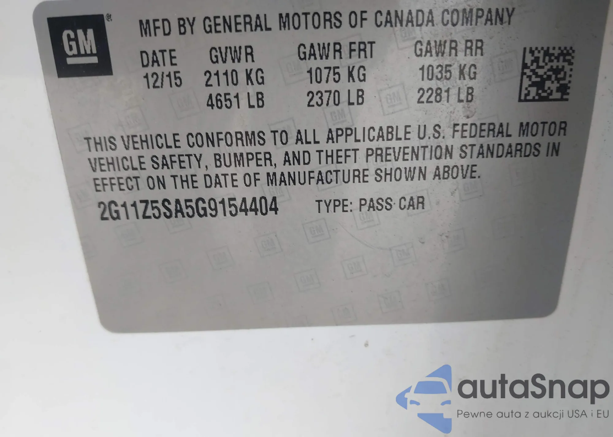 VIN: 2G11Z5SA5G9154404