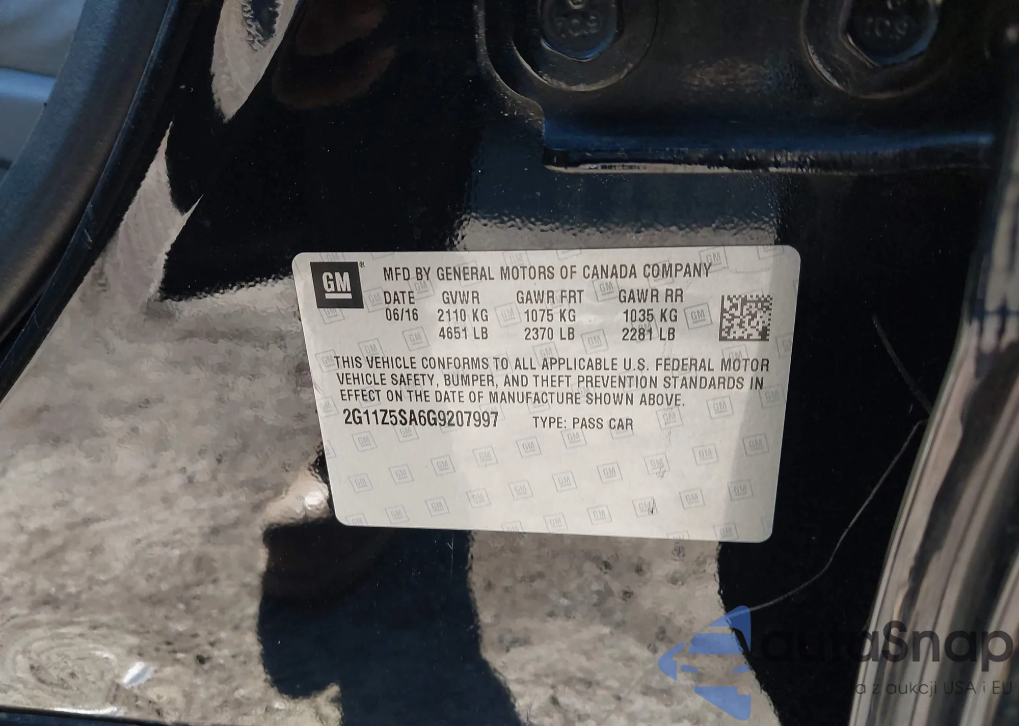 VIN: 2G11Z5SA6G9207997