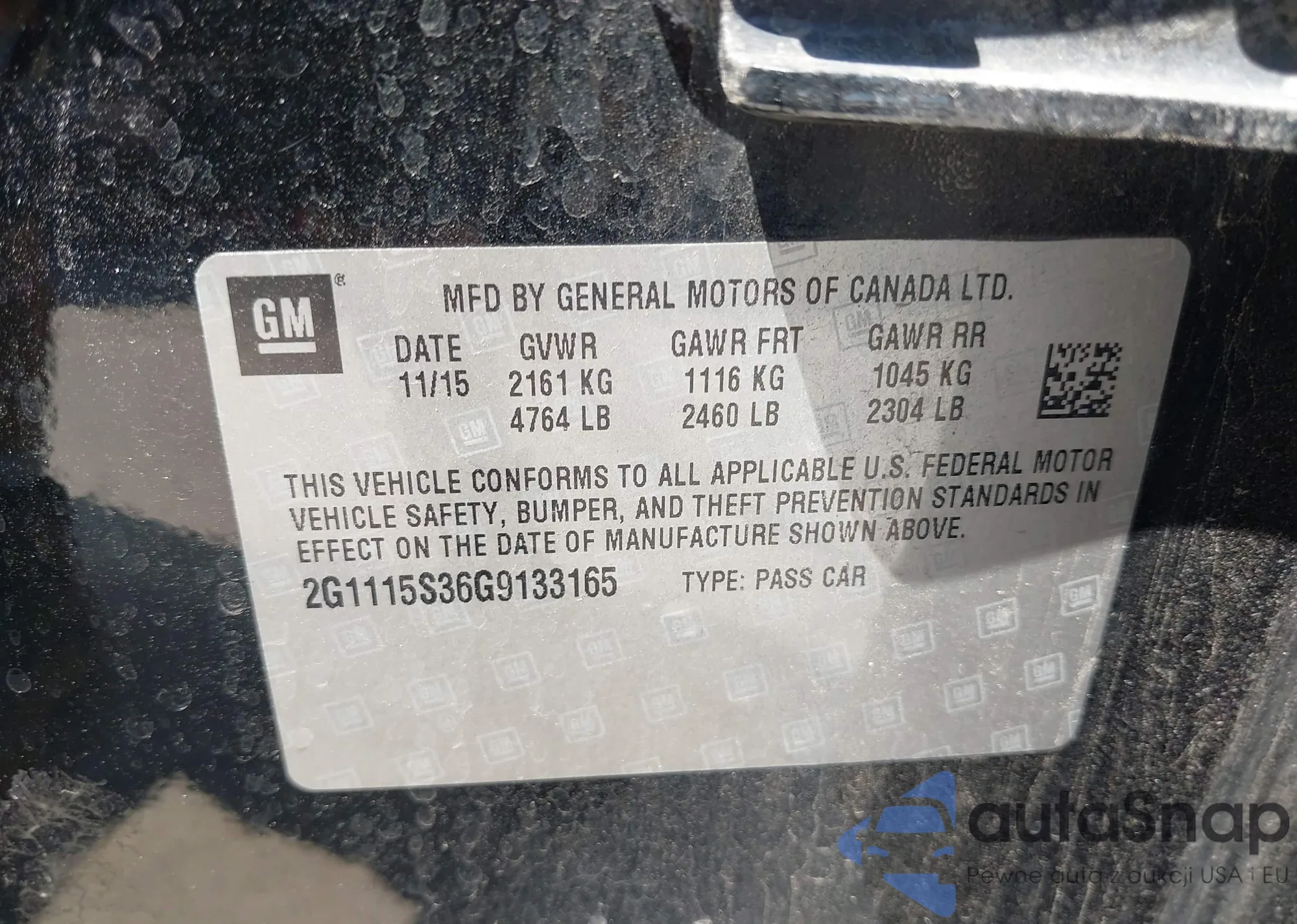 VIN: 2G1115S36G9133165