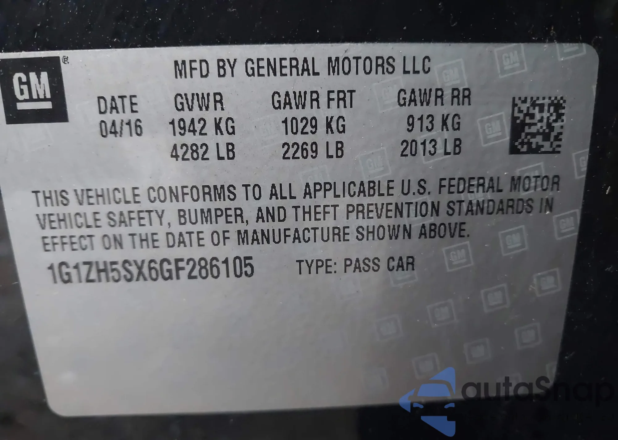 VIN: 1G1ZH5SX6GF286105