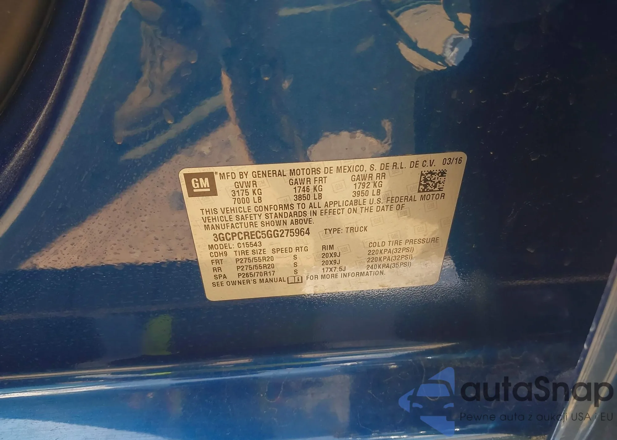 • VIN: 3GCPCREC5GG275964