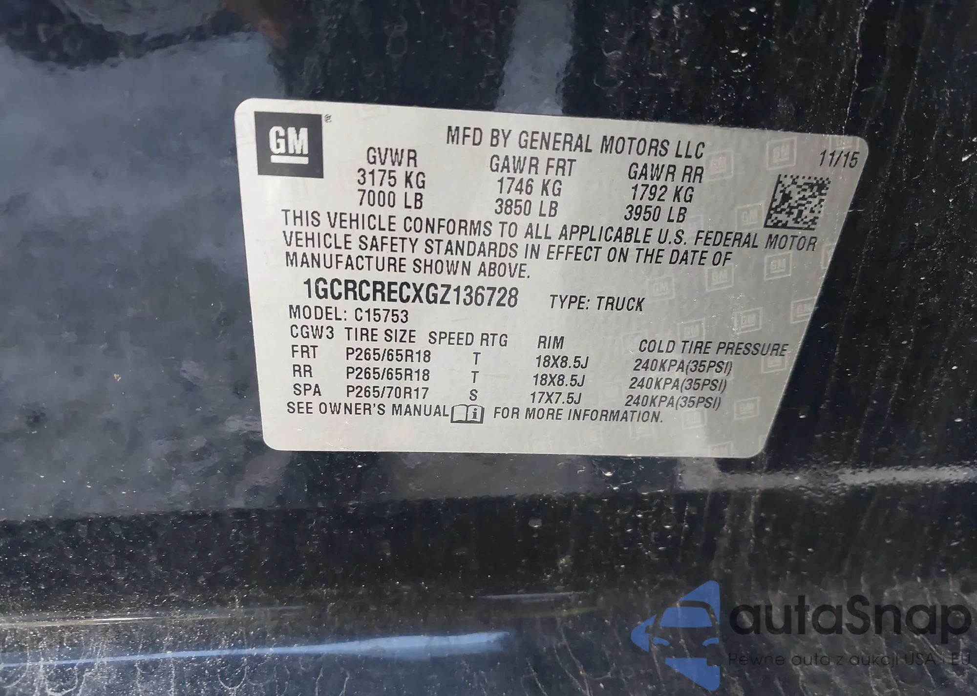 VIN: 1GCRCRECXGZ136728