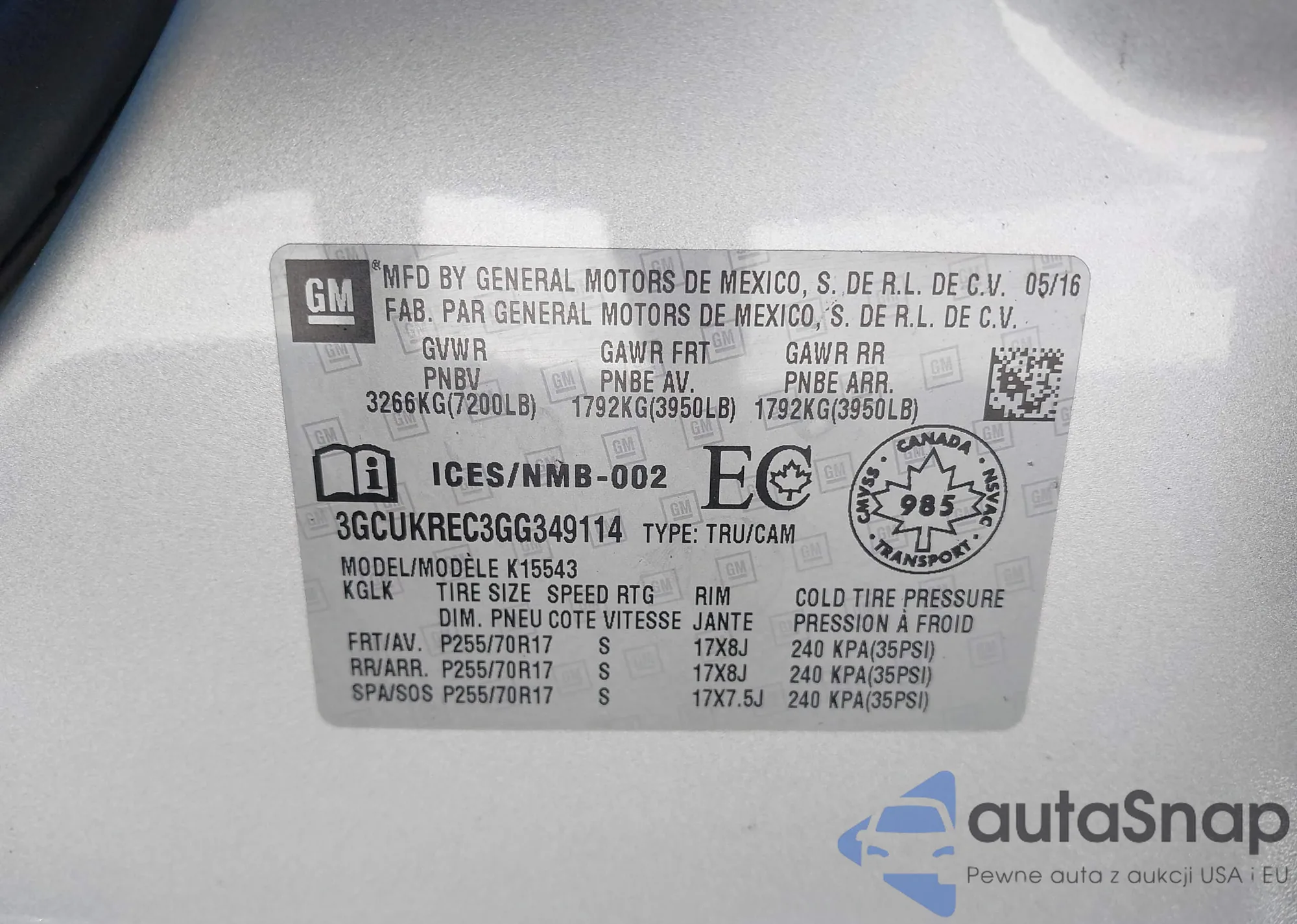 VIN: 3GCUKREC3GG349114