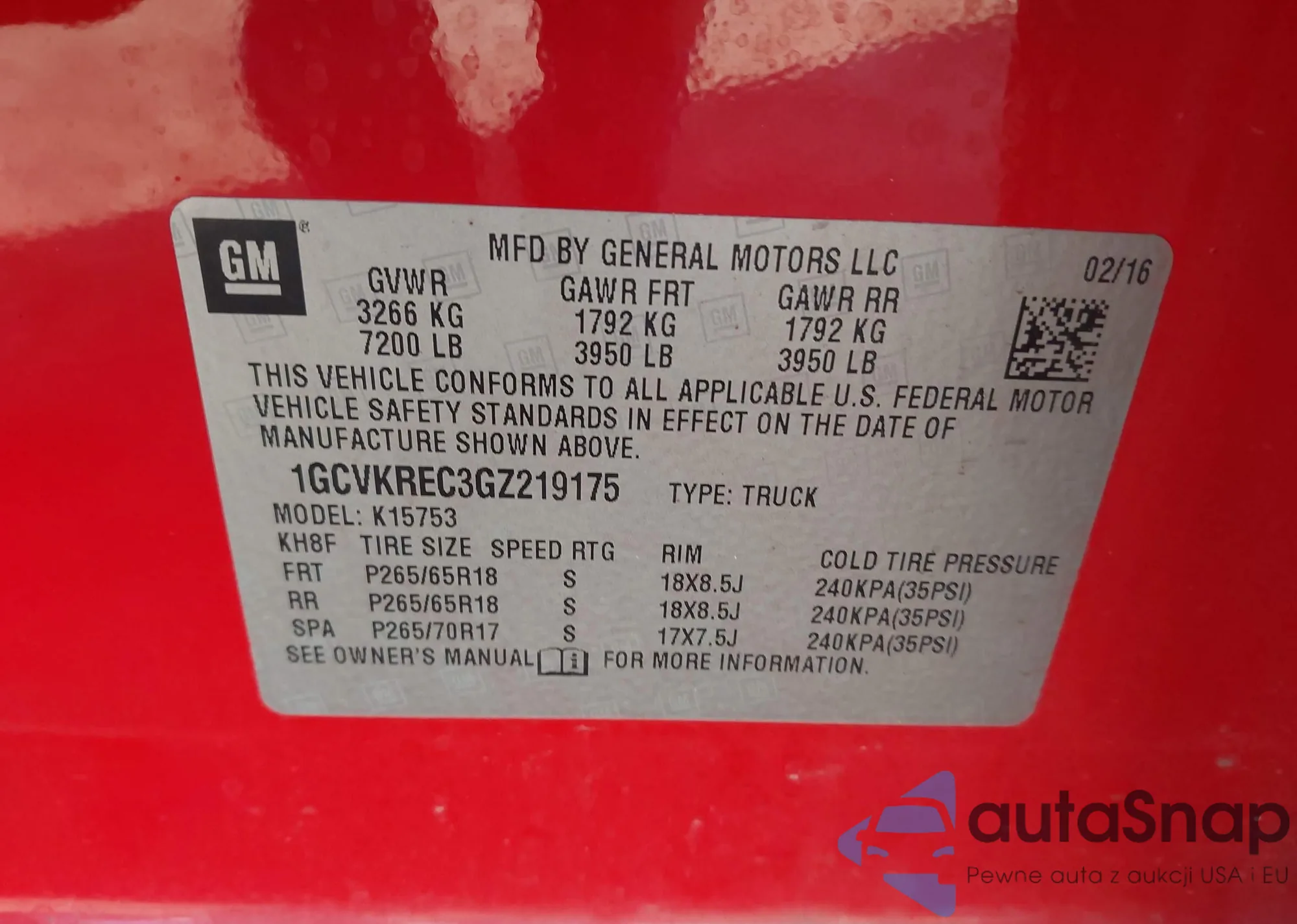 VIN: 1GCVKREC3GZ219175