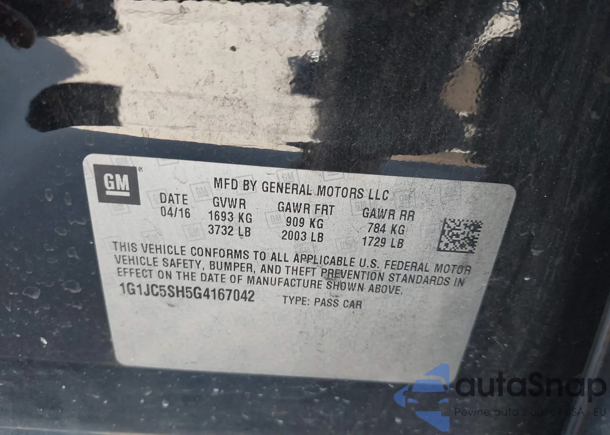 The car Chevrolet Sonic 2016 (VIN 1G1JC5SH5G4167042) has not been auctioned before. The documents are clean, and the mileage matches or is below the market average. Sold by an insurance company – we recommend purchase. Delivery to the port will take approx. 6–8 weeks.
