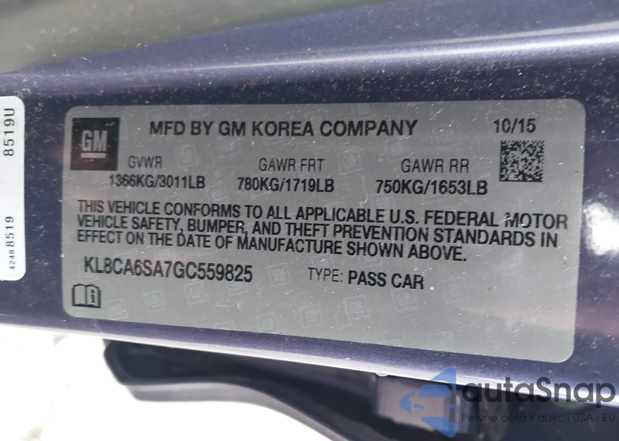 The car Chevrolet Spark 2016 (VIN KL8CA6SA7GC559825) has not been auctioned before. The documents are clean, and the mileage matches or is below the market average. Sold by an insurance company – we recommend purchase. Delivery to the port will take approx. 6–8 weeks.
