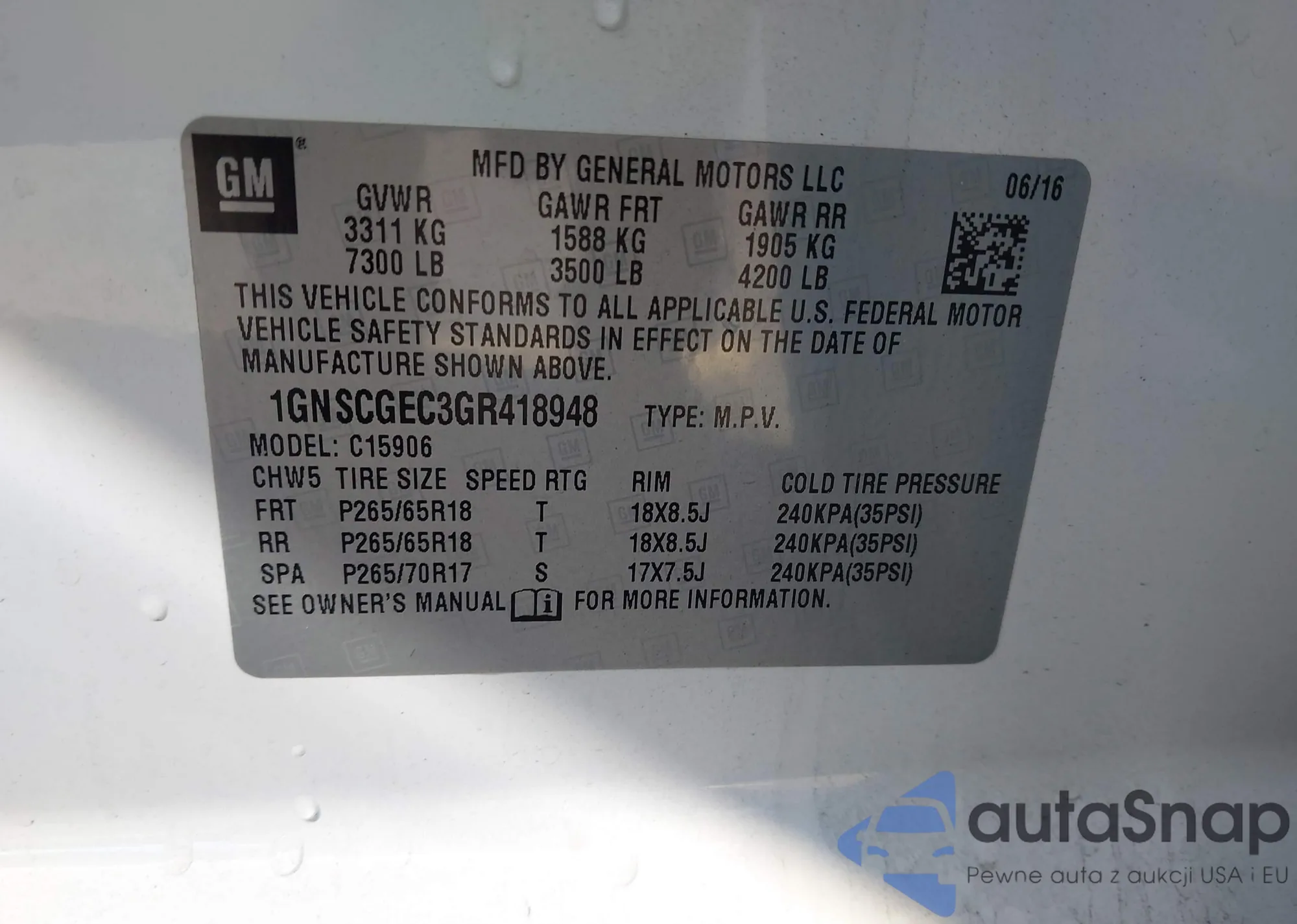 VIN: 1GNSCGEC3GR418948