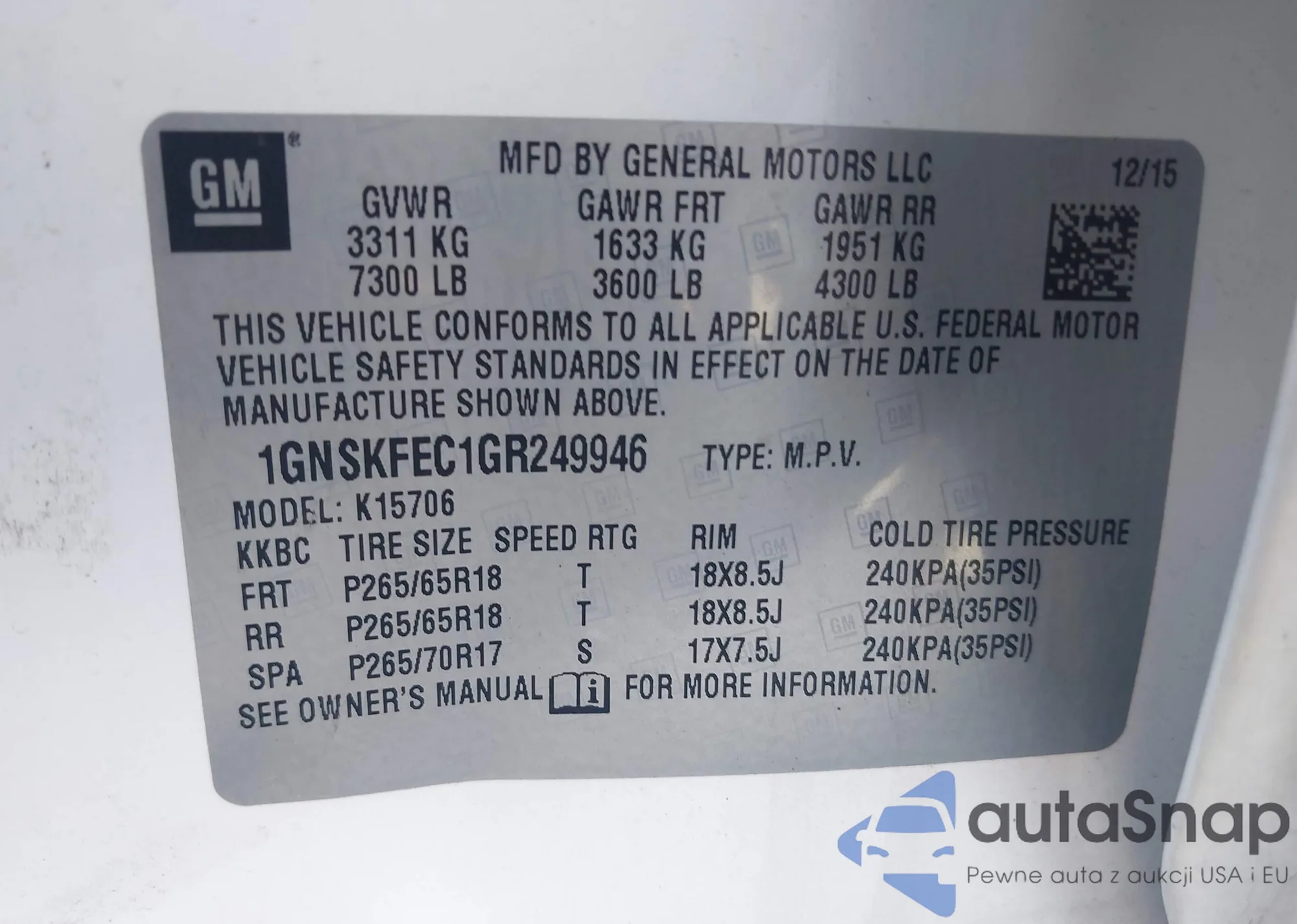 VIN: 1GNSKFEC1GR249946