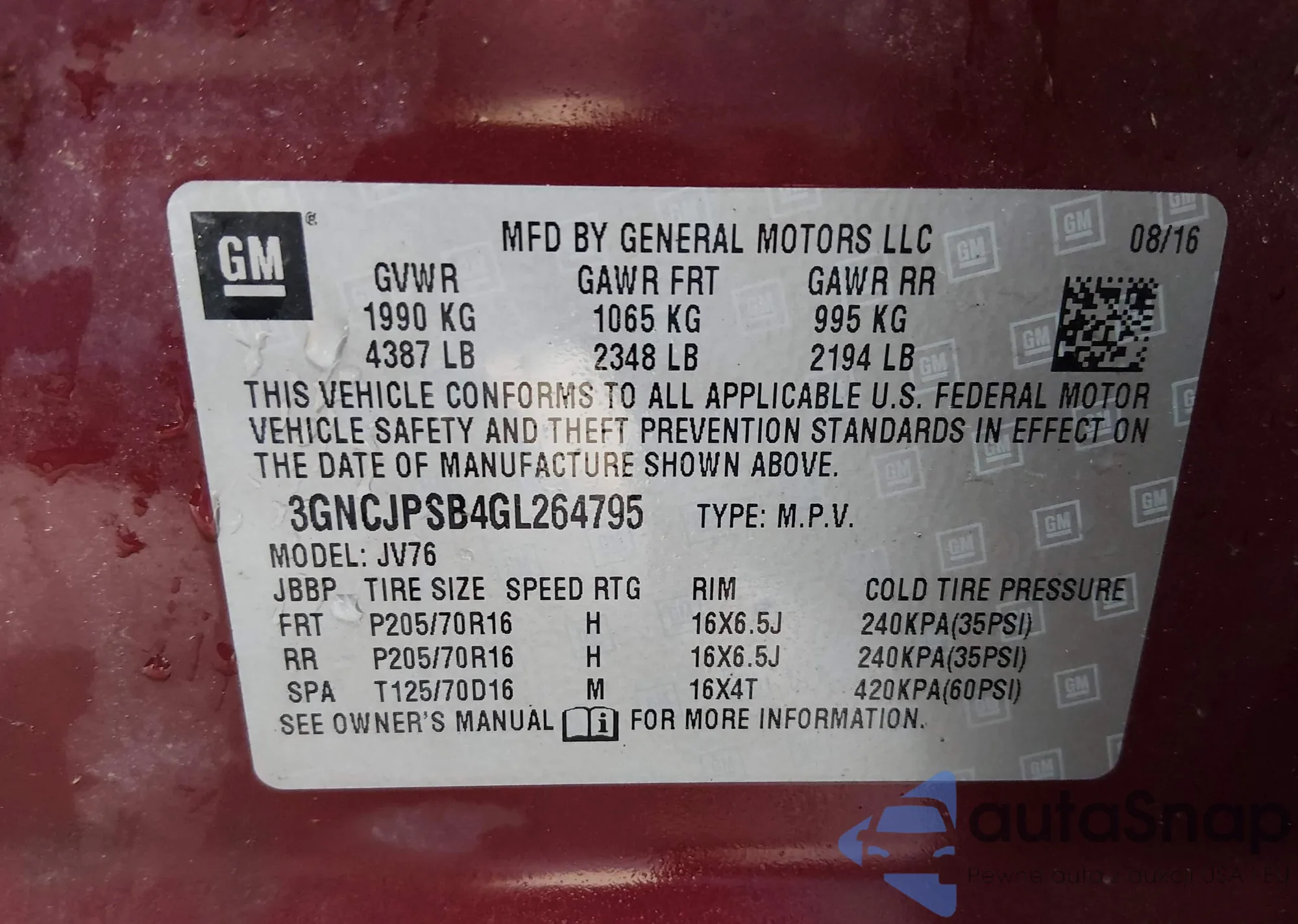 VIN: 3GNCJPSB4GL264795