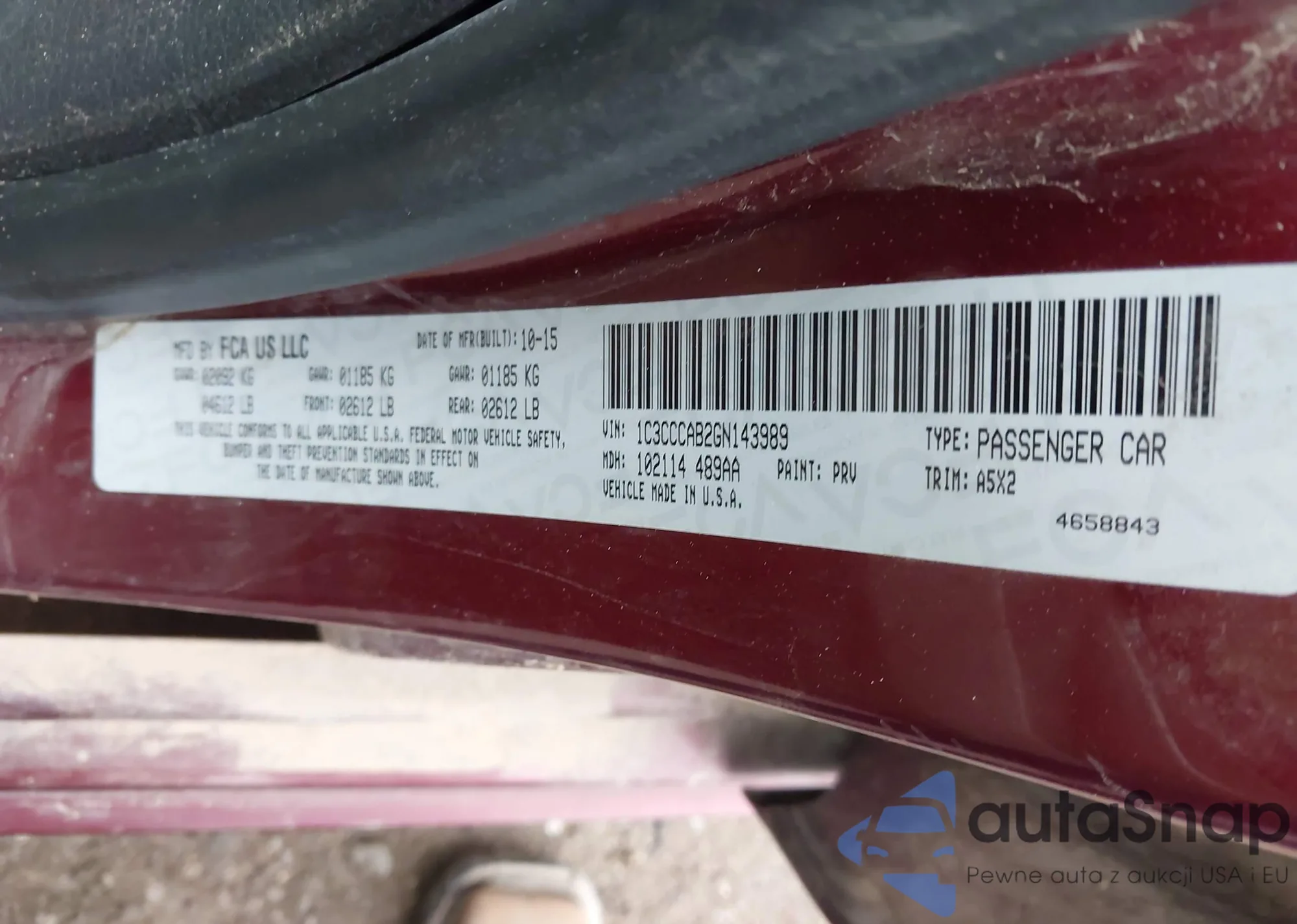 The car Chrysler 200 2016 (VIN 1C3CCCAB2GN143989) has not been auctioned before. The documents are clean, and the mileage matches or is below the market average. Sold by an insurance company – we recommend purchase. Delivery to the port will take approx. 6–8 weeks.
