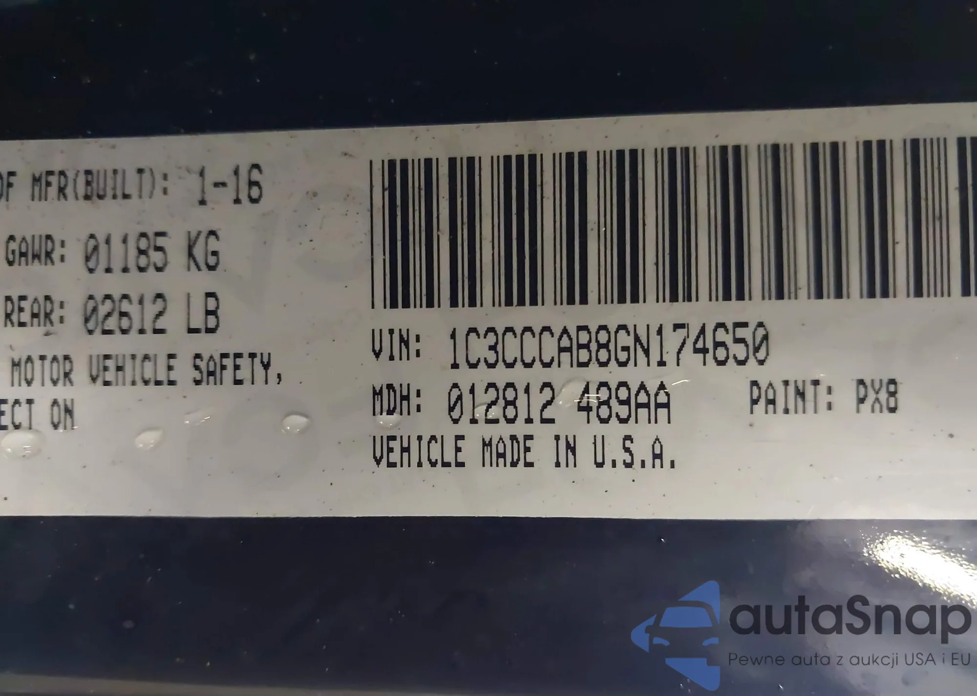 • VIN: 1C3CCCAB8GN174650