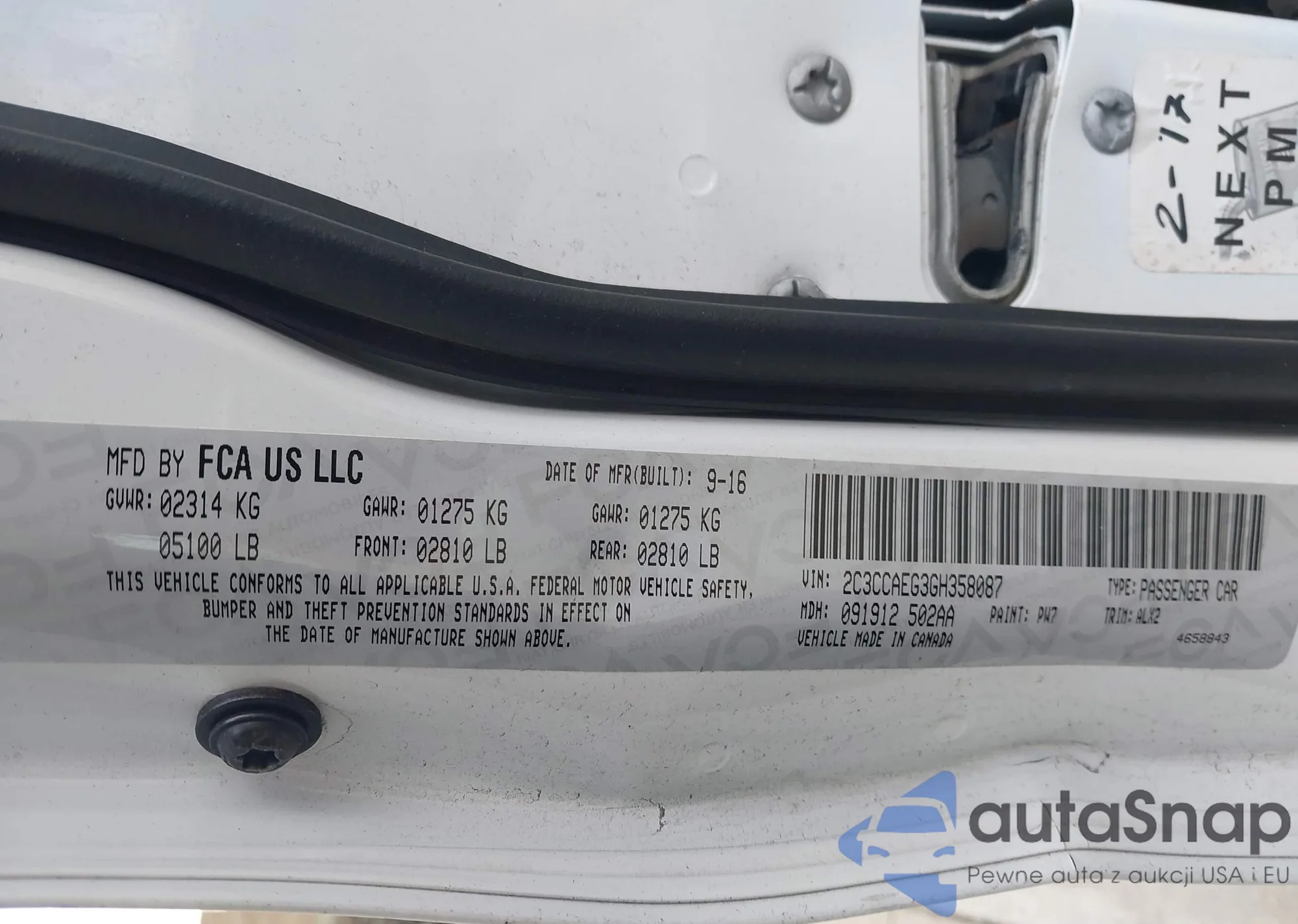 • VIN: 2C3CCAEG3GH358087
