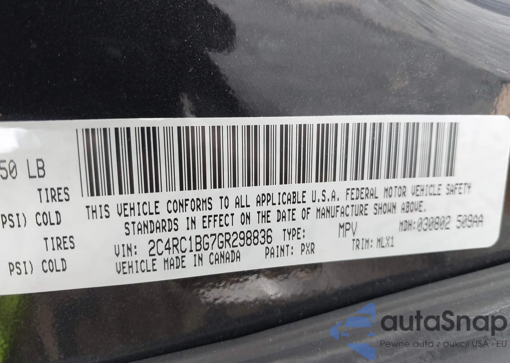 The car Chrysler Town & Country 2016 (VIN 2C4RC1BG7GR298836) has documents that prevent registration. Export and registration may be difficult. Contact AutaSnap experts to find alternatives.