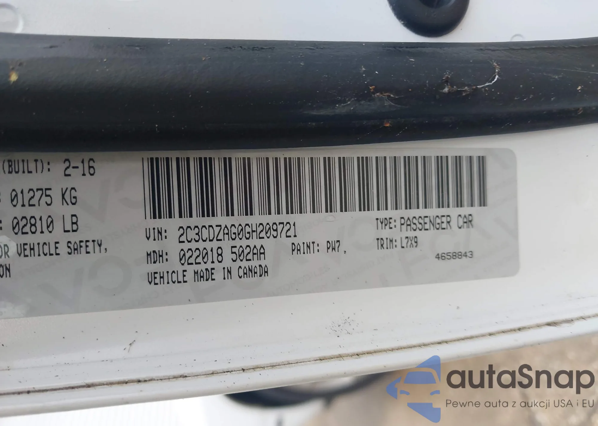 The car Dodge Challenger 2016 (VIN 2C3CDZAG0GH209721) has not been auctioned before. The documents are clean, and the mileage matches or is below the market average. Sold by an insurance company – we recommend purchase. Delivery to the port will take approx. 6–8 weeks.