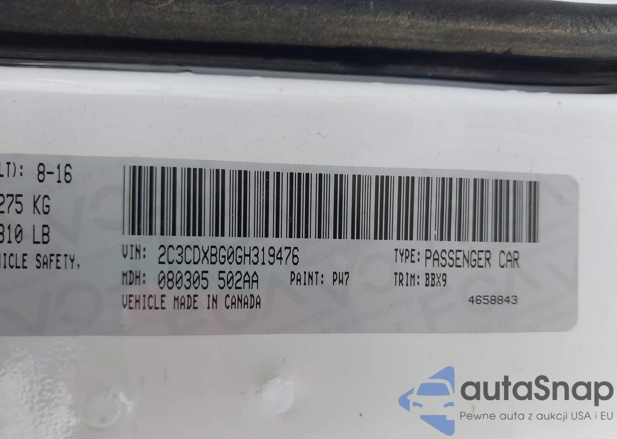 VIN: 2C3CDXBG0GH319476