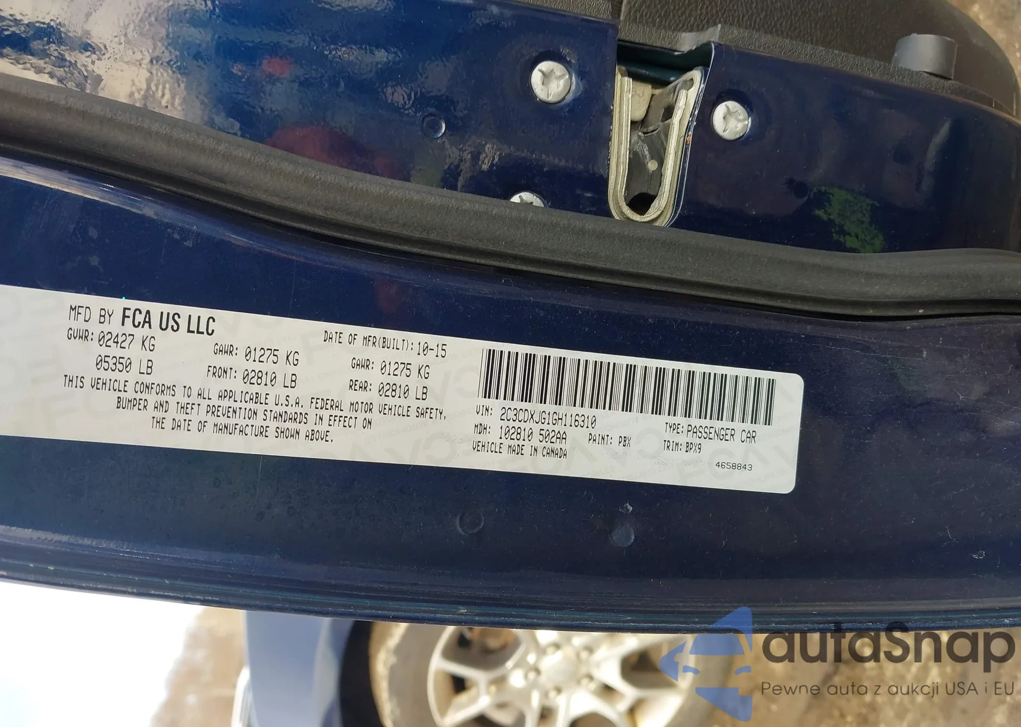 The car Dodge Charger 2016 (VIN 2C3CDXJG1GH116310) has not been auctioned before. The documents are clean, and the mileage matches or is below the market average. Sold by an insurance company – we recommend purchase. Delivery to the port will take approx. 6–8 weeks.