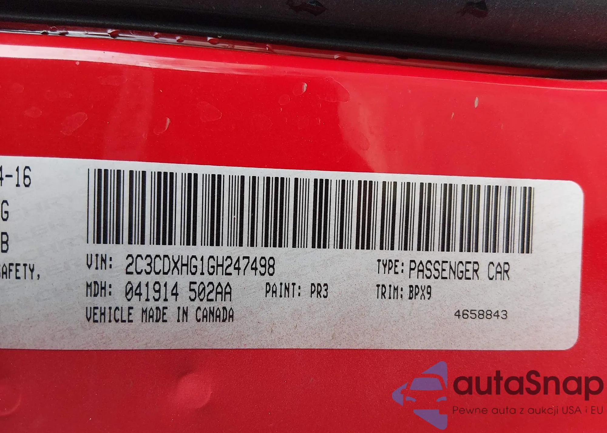 The car Dodge Charger 2016 (VIN 2C3CDXHG1GH247498) has not been auctioned before. The documents are clean, and the mileage matches or is below the market average. Sold by an insurance company – we recommend purchase. Delivery to the port will take approx. 6–8 weeks.