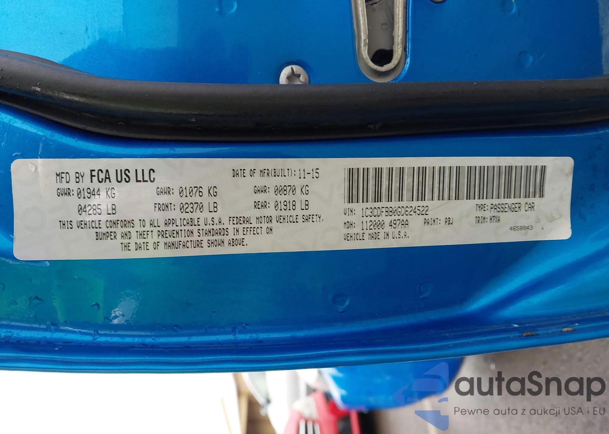 VIN: 1C3CDFBB0GD624522