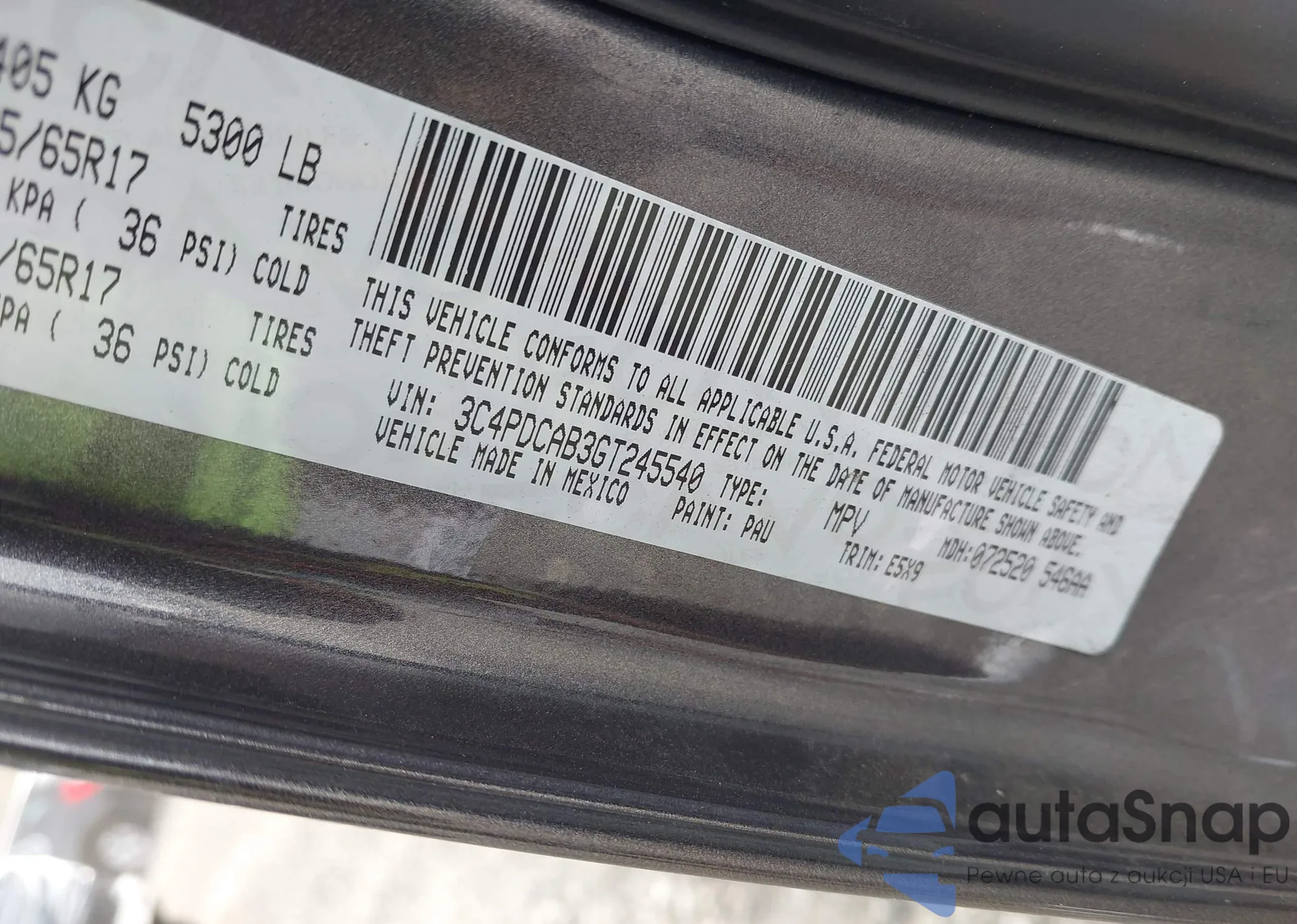 VIN: 3C4PDCAB3GT245540
