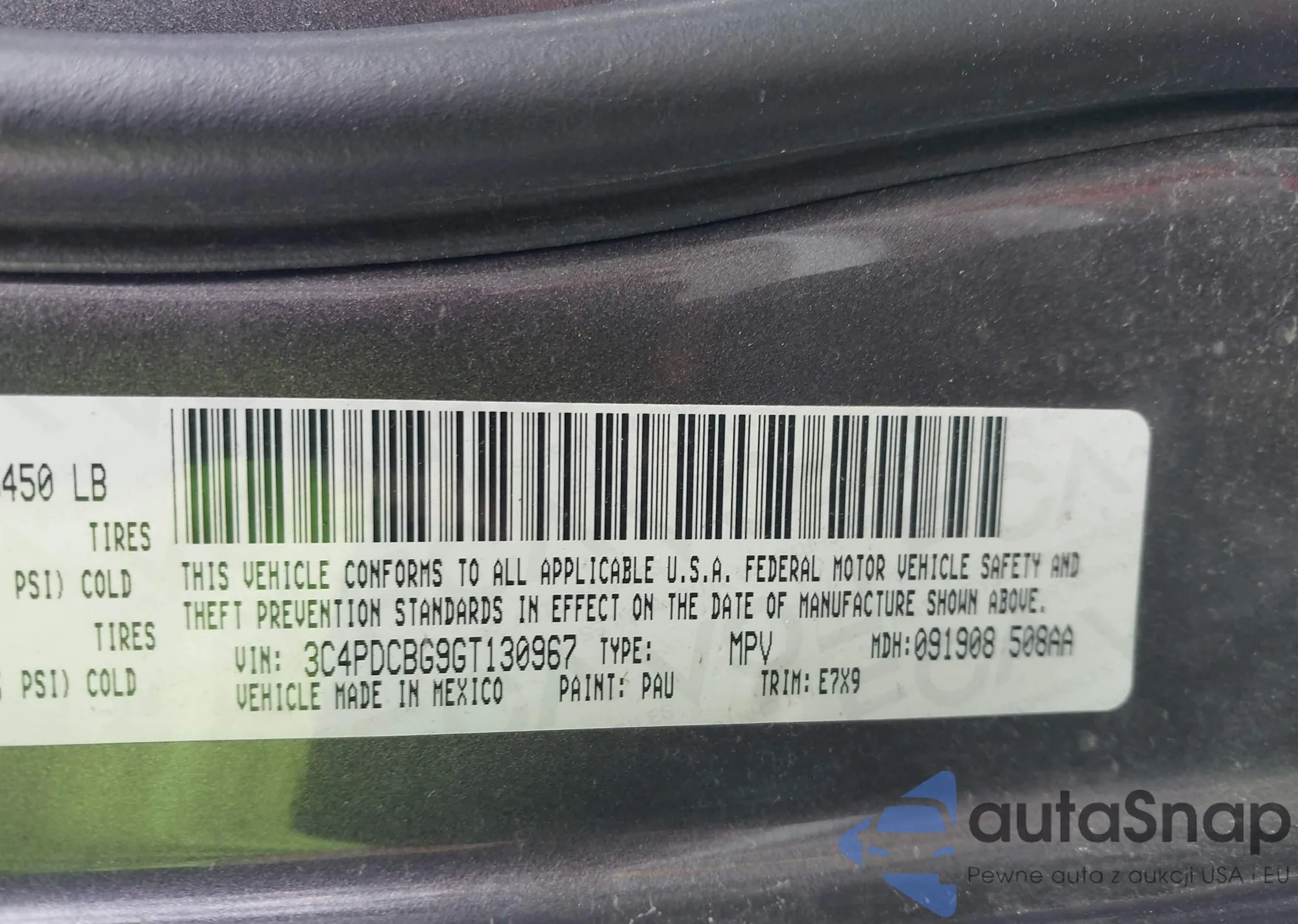 The car Dodge Journey 2016 (VIN 3C4PDCBG9GT130967) has not been auctioned before. The documents are clean, and the mileage matches or is below the market average. Sold by an insurance company – we recommend purchase. Delivery to the port will take approx. 6–8 weeks.
