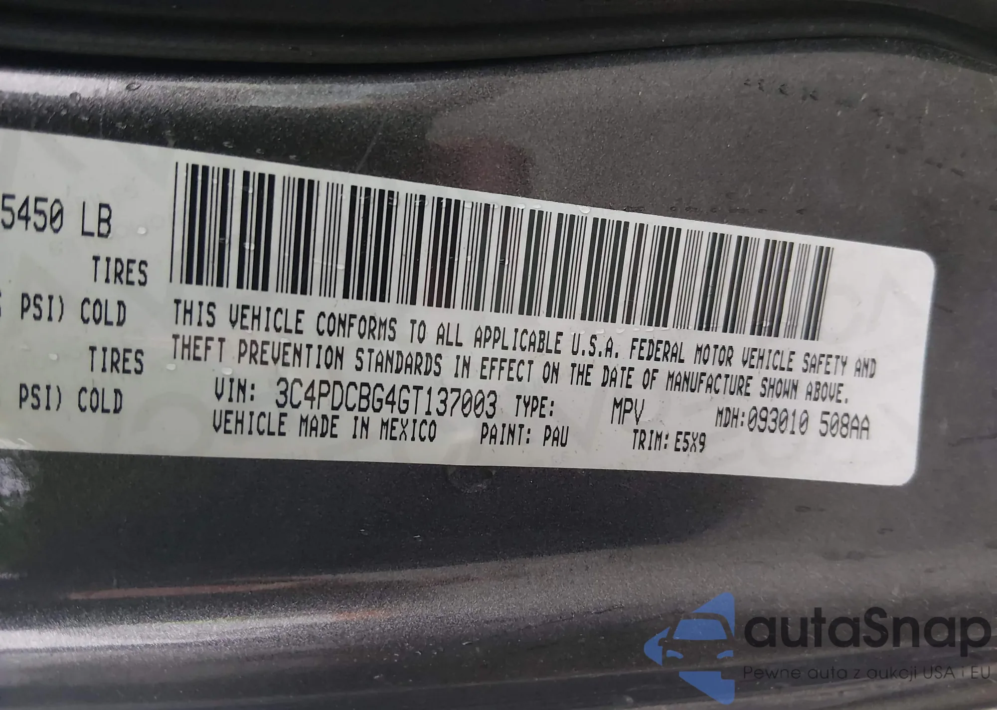 The car Dodge Journey 2016 (VIN 3C4PDCBG4GT137003) is sold by an unverified seller. We recommend checking the Carfax report and confirming registration possibilities before purchase.